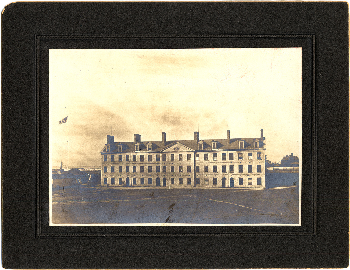 Favorite this☆ Barracks building at Fort Wayne Description: Barracks building; U.S. flag; wall behind. Handwritten on label on mat back: "Old barracks, inside moat. Folder 2. 41." Details Resource ID: DPA2461 Subject: Fortification--Michigan--Detroit United States. Army--Barracks and quarters Albumen prints Photographic prints Date Issued: Unknown year Format: 1 photographic print mounted on mat board ; image 4.5 x 6.5 in. Member of: Burton Historical Collection Filing Location: D/Forts-Wayne Rights: Physical rights are retained by DPL. Copyright is retained in accordance with U.S. copyright laws.