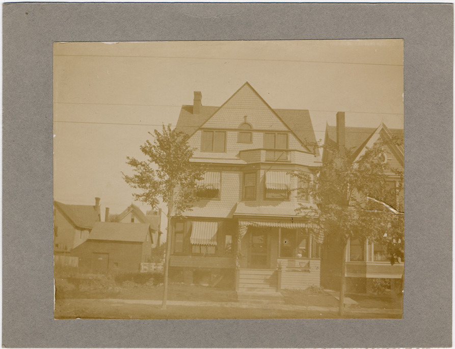 Favorite this☆ Unidentified brick house Description: Unidentified three-story brick house, covered in rounded shingles. Striped awnings above windows and front porch. Other residences surrounding house. Details Resource ID: DPA2503 Subject: Brick houses--Michigan--Detroit Photographic prints Date Issued: Unknown year Format: 1 photographic print mounted on stock ; image 3.75 x 4.5 in. Member of: Burton Historical Collection Filing Location: D/Historic houses Rights: Physical rights are retained by DPL. Copyright is retained in accordance with U.S. copyright laws.