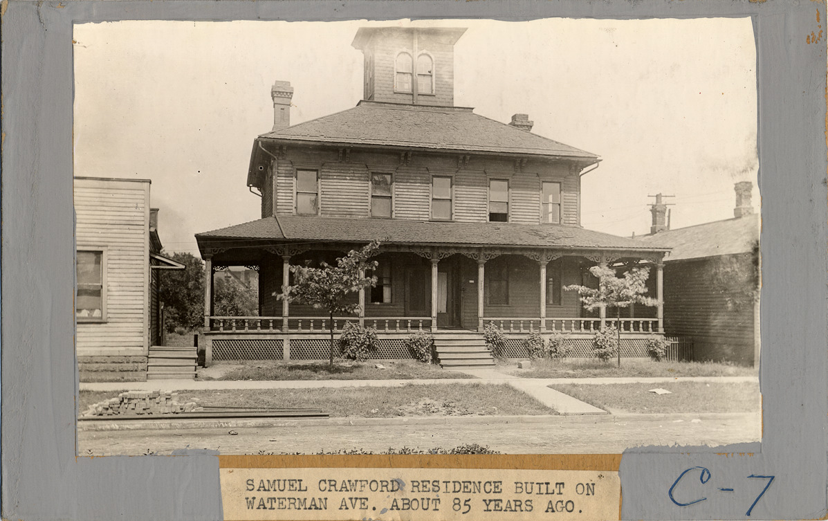 Favorite this☆ Samuel Crawford house Description: Two-story clapboard house with square cupola. Large overhang on roof, wrap-around porch on first floor. Label on front: "Samuel Crawford residence built on Waterman Ave. about 85 years ago." Details Resource ID: DPA2510 Subject: Architecture, Domestic--Michigan--Detroit Wooden-frame houses--Michigan--Detroit Albumen prints Photographic prints Date Issued: Unknown year Format: 1 photographic print mounted on mat board ; image 4.25 x 6.5 in. Member of: Burton Historical Collection Filing Location: D/Historic houses-Crawford, Samuel Rights: Physical rights are retained by DPL. Copyright is retained in accordance with U.S. copyright laws.