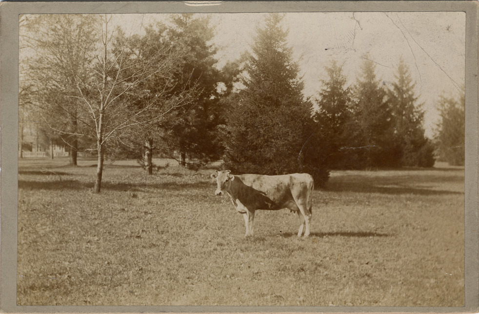 Favorite this☆ Cow by Moses W. Field residence Description: Cow on lawn in front of evergreen and leafless trees. Details Resource ID: DPA2651 Subject: Cows--Michigan--Detroit Albumen prints Photographic prints Date Issued: Unknown year Format: 1 photographic print mounted on mat board ; image 4 x 6.25 in. Member of: Burton Historical Collection Filing Location: D/Historic houses-Field, Moses W. Rights: Physical rights are retained by DPL. Copyright is retained in accordance with U.S. copyright laws.