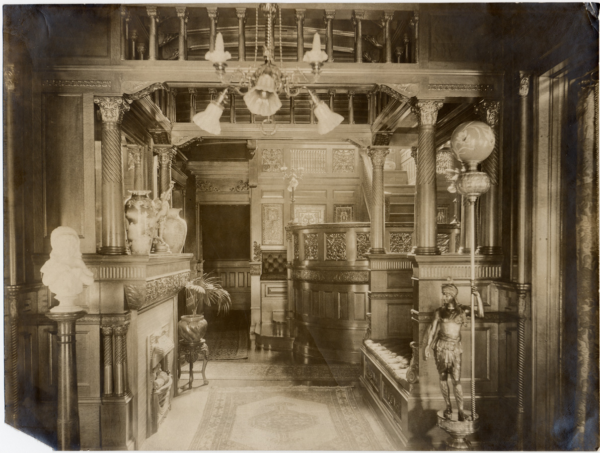 Favorite this☆ Hallway in Maxwell M. Fisher residence Description: Wood-paneled hall with staircase; upholstered settle facing fireplace; electric lamp hanging from ceiling. Sculpture and objets d'arts. Details Resource ID: DPA2653 Subject: Entrance halls--Michigan--Detroit Paneling--Michigan--Detroit Photographic prints Date Issued: Unknown year Format: 1 photographic print ; 6 x 8 in. Member of: Burton Historical Collection Filing Location: D/Historic houses-Fisher, Maxwell M. Rights: Physical rights are retained by DPL. Copyright is retained in accordance with U.S. copyright laws.