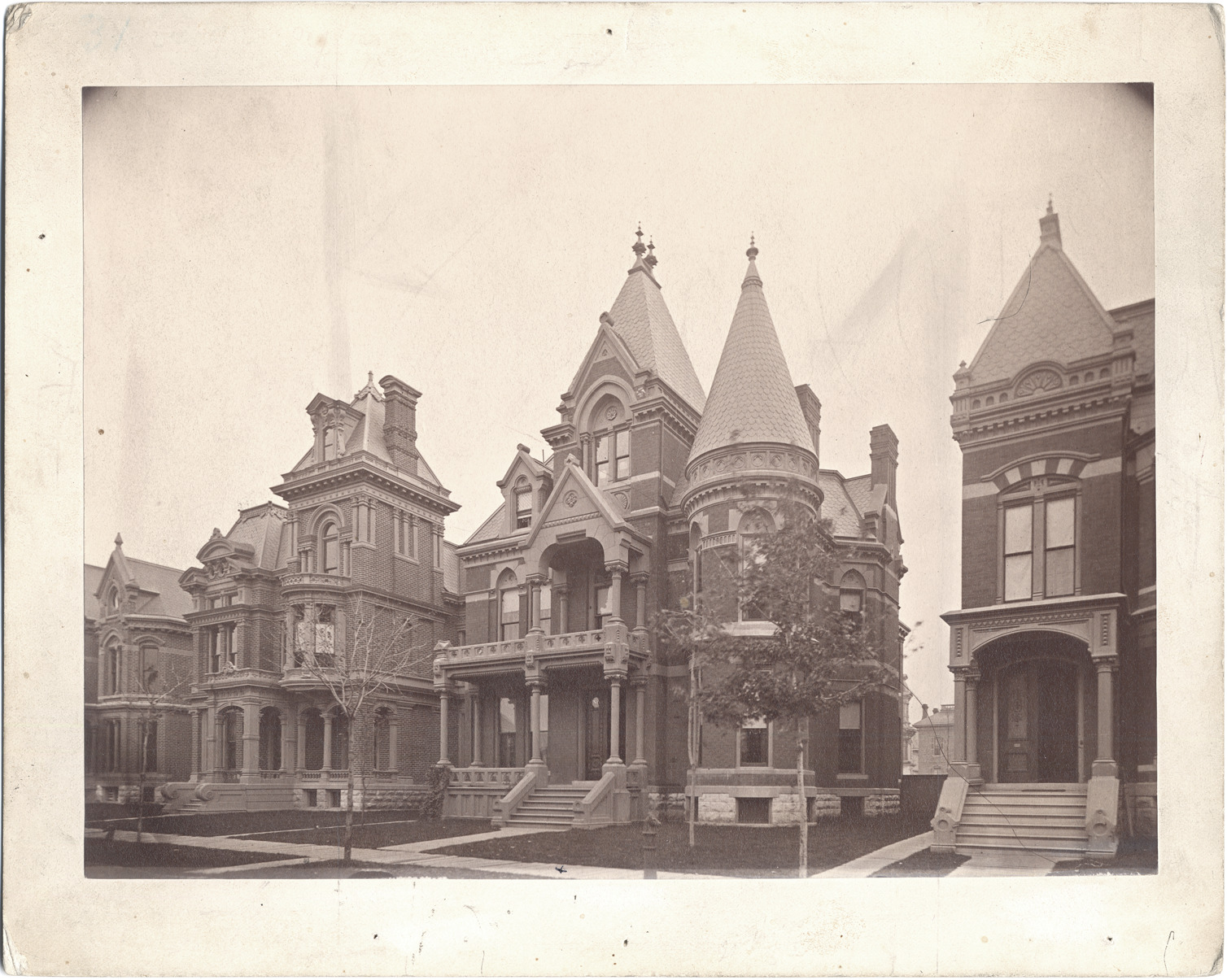 Favorite this☆ George S. Frost residence Description: Turreted brick house with upper and lower porches, between contemporary brick houses, viewed at an angle from the street. Handwritten on mat back: "Frost, George S., 86 Edmund Place." Details Resource ID: DPA2675 Subject: Frost, George Smith, 1824-1890--Homes and haunts--Michigan--Detroit Brick houses--Michigan--Detroit Architecture, Victorian--Michigan--Detroit Albumen prints Photographic prints Date Issued: Unknown year Format: 1 photographic print mounted on mat board ; image 6.5 x 8.75 in. Member of: Burton Historical Collection Filing Location: D/Historic houses-Frost, George S. Rights: Physical rights are retained by DPL. Copyright is retained in accordance with U.S. copyright laws.