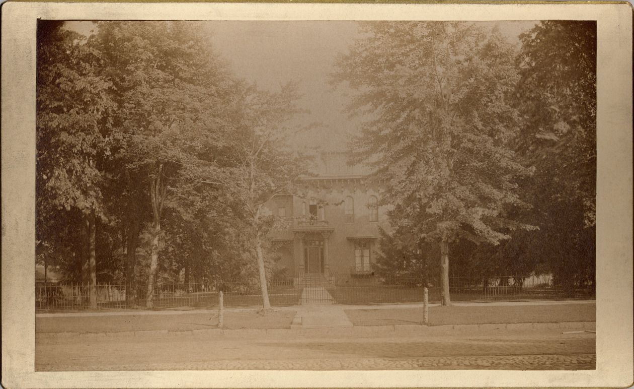 Favorite this☆ Entrance to Stephen Benedict Grummond residence Description: Italianate brick house viewed through thick trees, viewed across street over metal fence. Handwritten on card back: "S.B. Grummond, 810 Jefferson Ave., 1881." Details Resource ID: DPA2695 Subject: Grummond, Stephen Benedict, 1834-1894--Homes and haunts--Michigan--Detroit Brick houses--Michigan--Detroit Architecture, Victorian--Michigan--Detroit Cabinet photographs Albumen prints Photographic prints Date Issued: 1881 Format: 1 cabinet card ; image 4.75 x 7.5 in. Member of: Burton Historical Collection Filing Location: D/Historic houses-Grummond, S.B. Rights: Physical rights are retained by DPL. Copyright is retained in accordance with U.S. copyright laws.