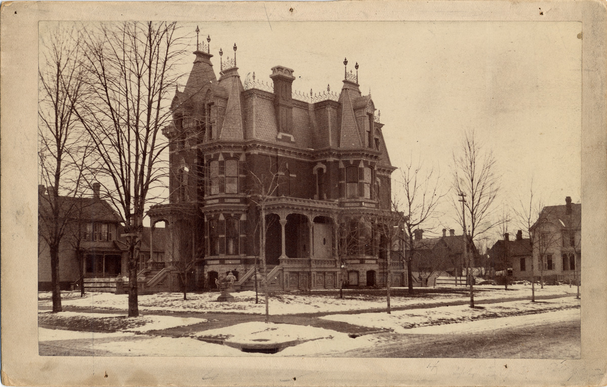 Favorite this☆ C.W. Moore residence Description: View of C. W. Moore residence from corner; house has steep pitched roof and cresting along roof line. Handwritten on back: "C. W. Moore, 134 Alexandrine W., 1881." Details Resource ID: DPA2844 Subject: Dwellings--Michigan--Detroit Gothic revival (Architecture)--Michigan--Detroit Albumen prints Photographic prints Date Issued: 1881 Format: 1 photographic print mounted on mat board ; image 4.5 x 7.25 in. Member of: Burton Historical Collection Filing Location: D/Historic houses-Moore, C.W. Rights: Physical rights are retained by DPL. Copyright is retained in accordance with U.S. copyright laws.