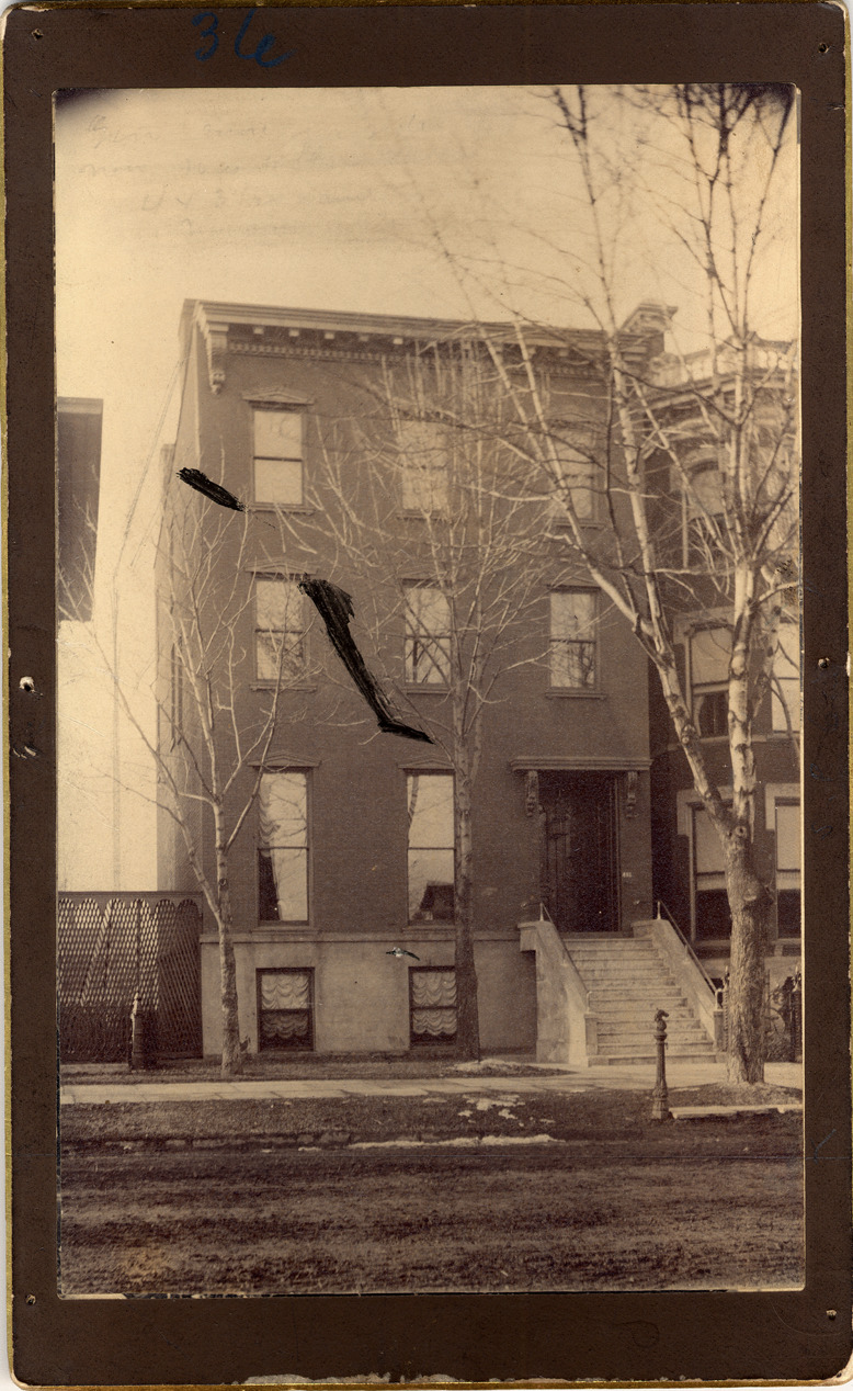 Favorite this☆ H.R. Newberry residence Description: Narrow three-story brick house, with front steps leading to raised entranceway, sandwiched tightly between two other buildings. Residence of H.R. Newberry. Handwritten on back: "H.R. Newberry, 481 Jefferson Ave., 1881, Farmer p. 386." Details Resource ID: DPA2853 Subject: Brick houses--Michigan--Detroit Architecture, Domestic--Michigan--Detroit Albumen prints Photographic prints Date Issued: 1881 Format: 1 photographic print mounted on mat board ; image 7.25 x 4.5 in. Member of: Burton Historical Collection Filing Location: D/Historic houses-Newberry, H.R. Rights: Physical rights are retained by DPL. Copyright is retained in accordance with U.S. copyright laws.