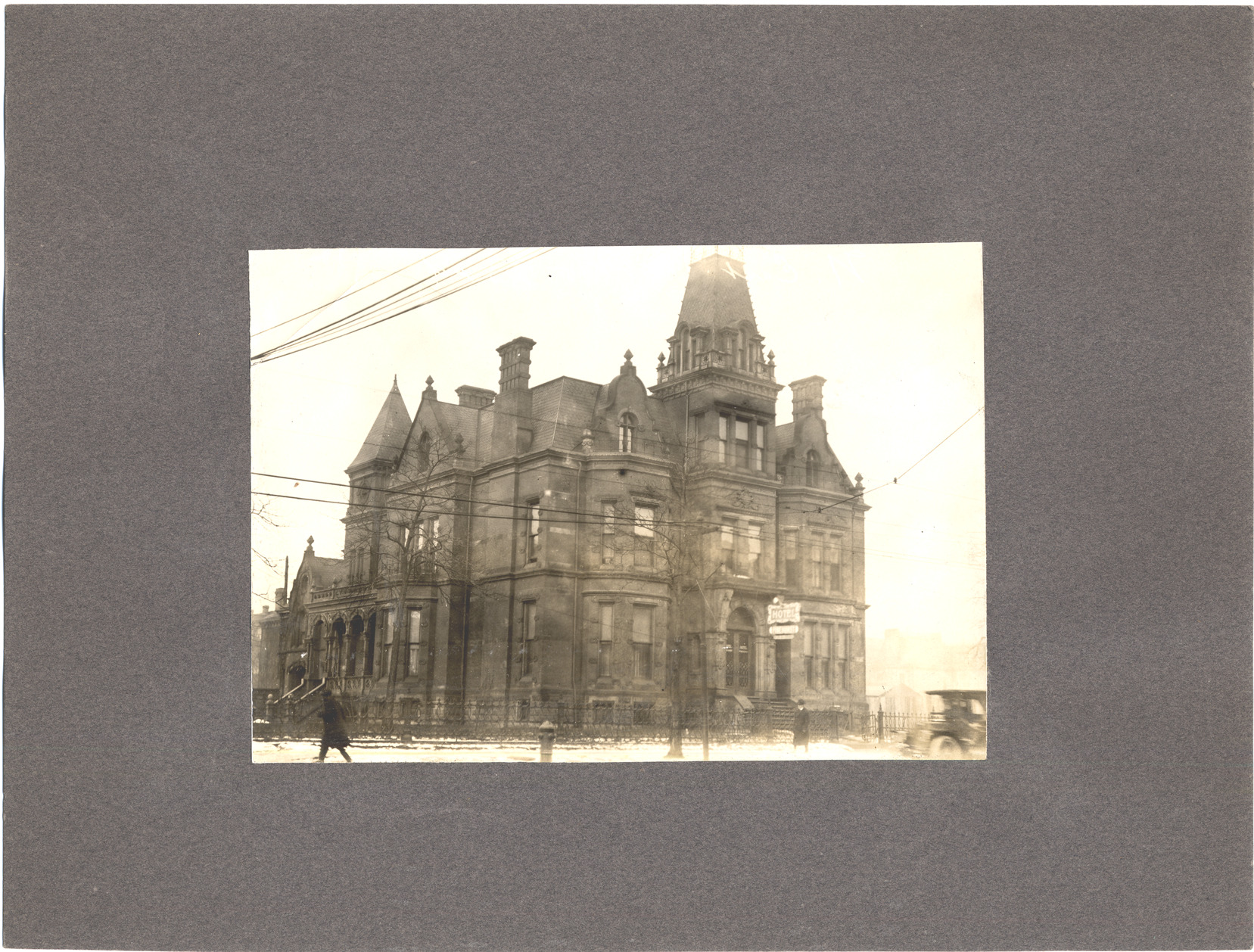 Favorite this☆ Allan Shelden residence Description: View of Allan Shelden residence. Two men on sidewalk walking in front of the house; car on street; Hotel Pinehurst sign over doorway. Label on back: "196 W. Fort Street, 1881." Details Resource ID: DPA2912 Subject: Dwellings--Michigan--Detroit Architecture, Victorian--Michigan--Detroit Hotels--Michigan--Detroit Photographic prints Date Issued: 1881 Format: 1 photographic print mounted on mat board ; image 4.5 x 6.5 in. Member of: Burton Historical Collection Filing Location: D/Historic houses-Shelden, Alan Rights: Physical rights are retained by DPL. Copyright is retained in accordance with U.S. copyright laws.