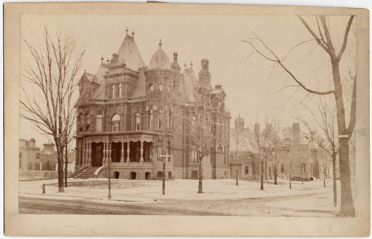 Favorite this☆ Charles H. Smith residence Description: View of Charles H. Smith residence with carriage house. Handwritten on back: "821 Woodward Ave., 1885." Details Resource ID: DPA2919 Subject: Architecture, Victorian--Michigan--Detroit Dwellings--Michigan--Detroit Albumen prints Photographic prints Date Issued: 1885 Format: 1 photographic print mounted on mat board ; image 4.5 x 7.5 in. Member of: Burton Historical Collection Filing Location: D/Historic houses-Smith, Charles H. Rights: Physical rights are retained by DPL. Copyright is retained in accordance with U.S. copyright laws.