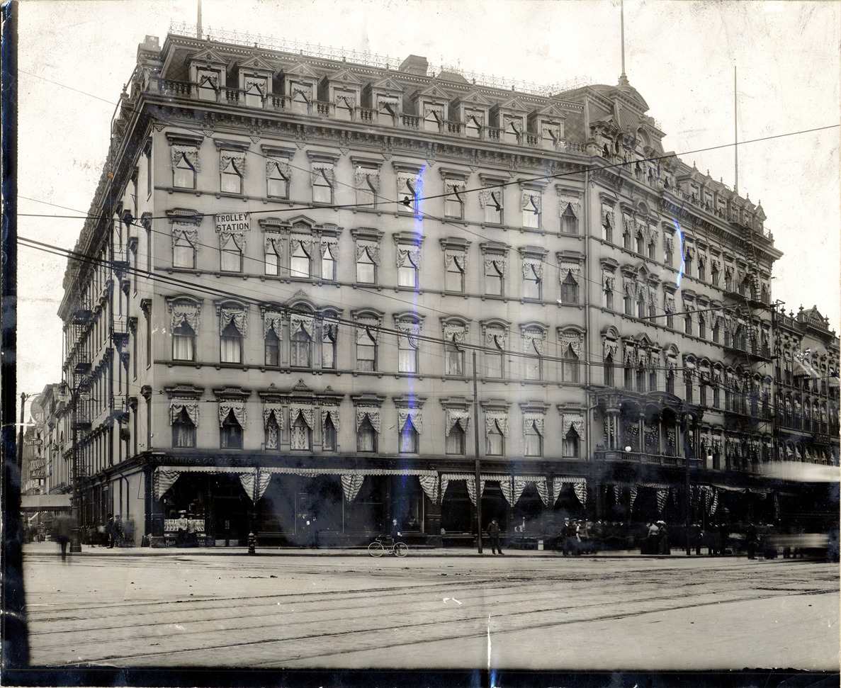 Favorite this☆ Russell House Description: View of Russell House; man with bicycle in front of building; sign suspended from wires: "Trolley Station." Handwritten on back: "Old Russell House." Details Resource ID: DPA3088 Subject: Hotels--Michigan--Detroit Photographic prints Date Issued: Unknown year Format: 1 photographic print ; image 6.5 x 8 in. Member of: Burton Historical Collection Filing Location: D/Hotels-Russell House Rights: Physical rights are retained by DPL. Copyright is retained in accordance with U.S. copyright laws.