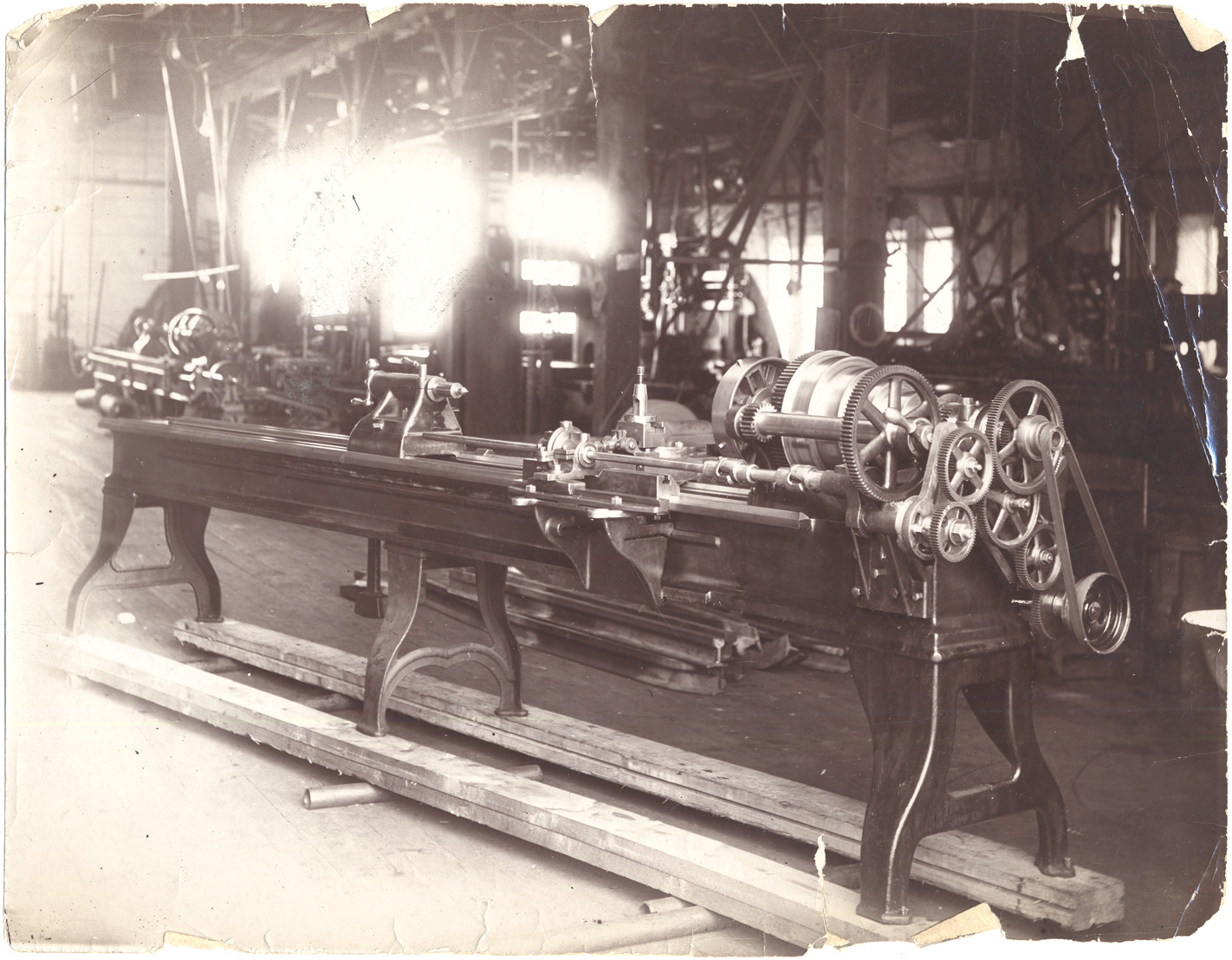 Favorite this☆ Lathe on factory floor Description: Pulley-powered lathe mounted on boards laid on pipes, on factory floor. Another lathe and other machinery in background. Very bright light through windows in background. Handwritten on photograph back: "499." Photograph ragged on edges. Details Resource ID: DPA3105 Subject: Lathes--Michigan--Detroit Factories--Michigan--Detroit Photographic prints Date Issued: Unknown year Format: 1 photographic print ; 7.5 x 9.5 in. Member of: Burton Historical Collection Filing Location: D/Industries & business houses Rights: Physical rights are retained by DPL. Copyright is retained in accordance with U.S. copyright laws.