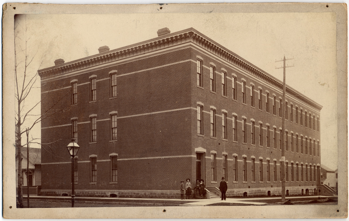 Favorite this☆ F.A. Hubel factory Description: View of three-story brick building; a bearded man wearing hat poses with four children wearing hats and roller skates near front steps. Handwritten on back: "Capsule factory of F.A. Hubel, 1883, cor. Abbott & 4th Sts." Details Resource ID: DPA3234 Subject: Factories--Michigan--Detroit Albumen prints Photographic prints Date Issued: 1883 Format: 1 photographic print mounted on mat board ; image 4.5 x 7.5 in. Member of: Burton Historical Collection Filing Location: D/Industries & business houses-Hubel, F.A. Rights: Physical rights are retained by DPL. Copyright is retained in accordance with U.S. copyright laws.