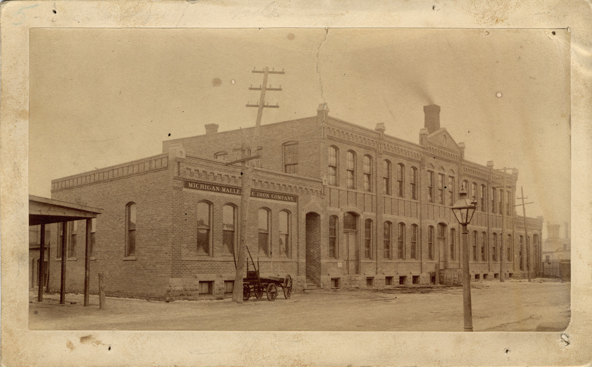 Favorite this☆ Michigan Malleable Iron Co. Description: View of brick factory building; cart parked in front; sign on building: "Michigan Malleable Iron Company." Handwritten on back: "Woodbridge St. near 20th St., 1883." Details Resource ID: DPA3273 Subject: Factories--Michigan--Detroit Iron industry and trade--Michigan--Detroit Albumen prints Photographic prints Date Issued: 1883 Format: 1 photographic print mounted on mat board ; image 5 x 7.75 in. Member of: Burton Historical Collection Filing Location: D/Industries & business houses-Michigan Malleable Iron Co. Rights: Physical rights are retained by DPL. Copyright is retained in accordance with U.S. copyright laws.