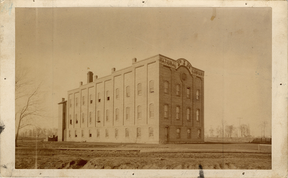 Favorite this☆ National Pin Co. Description: View of three-story brick factory building with chimneys; painted on building: "National Pin Company." Handwritten on back: "Grand River Ave. bet. 16th & 17th Sts., 1883." Details Resource ID: DPA3286 Subject: Factories--Michigan--Detroit Albumen prints Photographic prints Date Issued: 1883 Format: 1 photographic print mounted on mat board ; image 4.5 x 7 in. Member of: Burton Historical Collection Filing Location: D/Industries & business houses-National Pin Co. Rights: Physical rights are retained by DPL. Copyright is retained in accordance with U.S. copyright laws.