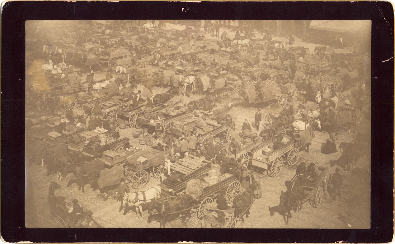 Favorite this☆ Central Market Description: Crowded scene of men and women; rows of horses and carts filled with produce. Handwritten on back: "Photograph of teams and vegetable market, Central Market, 1880." Details Resource ID: DPA3421 Subject: Farmers' markets--Michigan--Detroit Photographic prints Albumen prints Date Issued: 1880 Format: 1 photographic print mounted on mat board ; image 4.5 x 7.5 in. Member of: Burton Historical Collection Filing Location: D/Markets-Central Rights: Physical rights are retained by DPL. Copyright is retained in accordance with U.S. copyright laws.