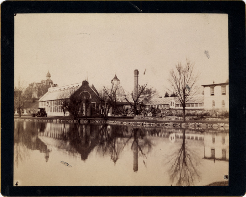 Favorite this☆ Greenhouse and pavilion Description: View of greenhouse and glass pavilion next to river or canal; banks lined with stones. Details Resource ID: DPA3428 Subject: Pavilions Greenhouses Albumen prints Photographic prints Date Issued: Unknown year Format: 1 photographic print mounted on mat board ; image 3.5 x 4.5 in. Member of: Burton Historical Collection Filing Location: D/Militia-Detroit Light Infantry Rights: Physical rights are retained by DPL. Copyright is retained in accordance with U.S. copyright laws.