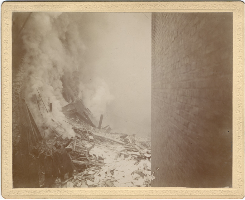 Favorite this☆ Wreckage from Detroit Journal building explosion Description: Rubble with smoke rising, viewed past brick wall. Handwritten on card back: "Journal explosion, Nov. 6/95. 10." Details Resource ID: DPA3462 Subject: Newspaper buildings--Michigan--Detroit Steam-boiler explosions--Michigan--Detroit Cabinet photographs Albumen prints Photographic prints Date Issued: 1895-11-06 Format: 1 cabinet card ; image 3.75 x 4.75 in. Member of: Burton Historical Collection Filing Location: D/Newspapers-Detroit Journal Rights: Physical rights are retained by DPL. Copyright is retained in accordance with U.S. copyright laws.