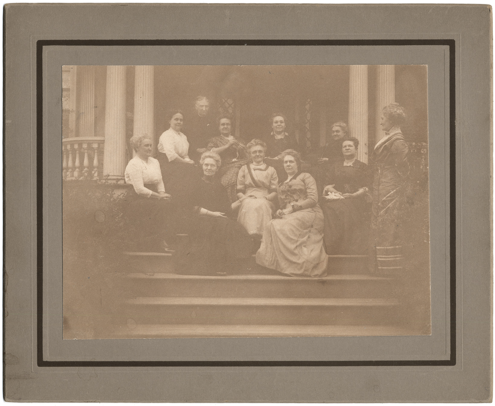 Favorite this☆ Birthday Club Description: Group of women and one man on steps by pillared porch. Handwritten on mat back: "Birthday Club (in Detroit). Met until none left." Details Resource ID: DPA3472 Subject: Women--Michigan--Detroit Clubs--Michigan--Detroit Portraits, Group--Michigan--Detroit Photographic prints Date Issued: Unknown year Format: 1 photographic print mounted on mat board ; image 6.25 x 8.25 in. Member of: Burton Historical Collection Filing Location: D/Old age homes-Birthday Club Rights: Physical rights are retained by DPL. Copyright is retained in accordance with U.S. copyright laws.