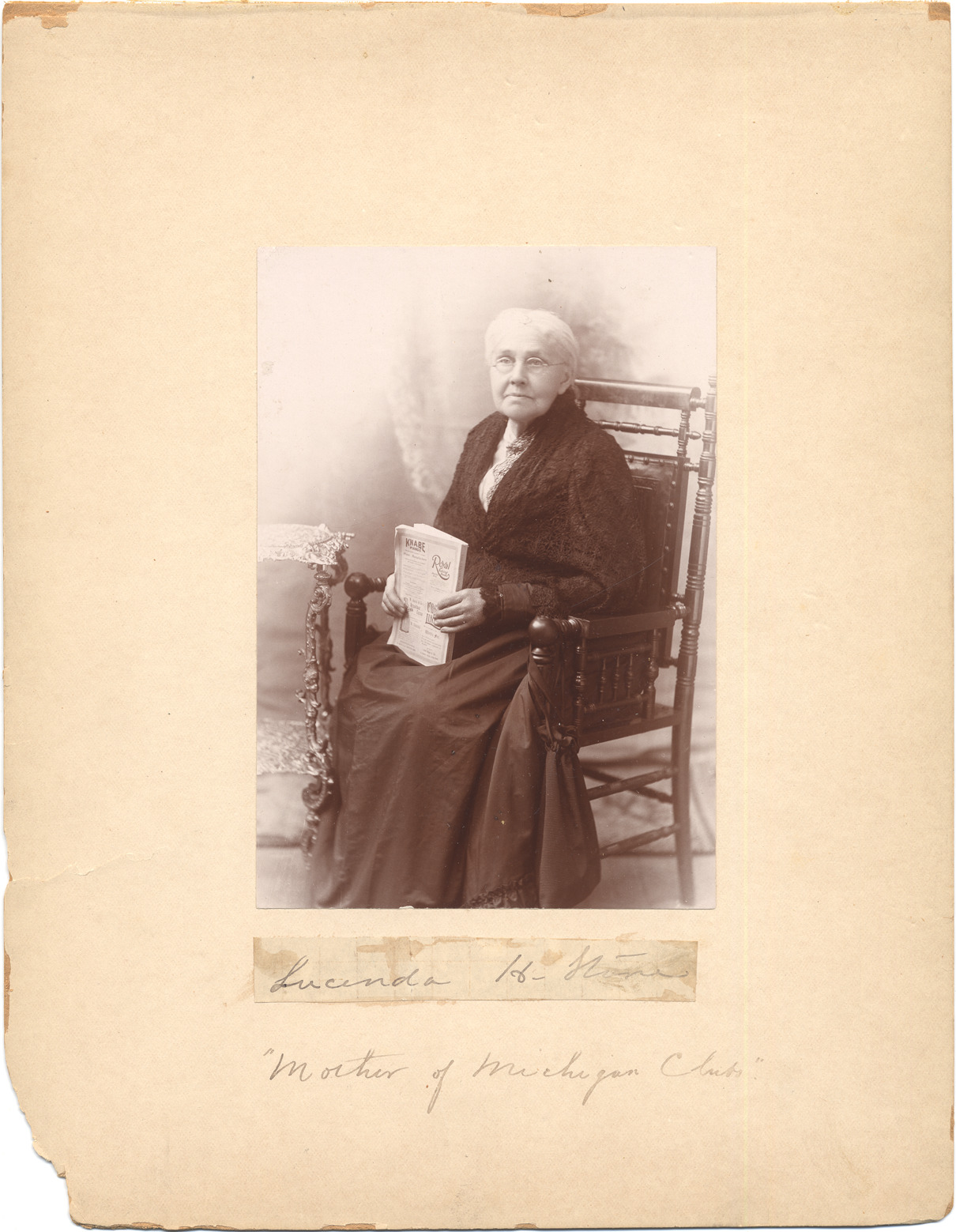 Favorite this☆ Portrait of Lucinda Stone Description: Portrait of elderly woman, wearing glasses and a shawl; holds catalog; seated in chair. Handwritten on front: "Lucinda H. Stone, 'Mother of Michigan Clubs.'" Handwritten on back: "Detroit Women's Club, ca.1890, founded 1873." Details Resource ID: DPA3484 Subject: Women--Societies and clubs Women--Portraits Albumen prints Photographic prints Date Issued: 1890 (year approximate) Format: 1 photographic print mounted on mat board ; image 5.5 x 4 in. Member of: Burton Historical Collection Filing Location: D/Organizations-Detroit-Women's Club Rights: Physical rights are retained by DPL. Copyright is retained in accordance with U.S. copyright laws.