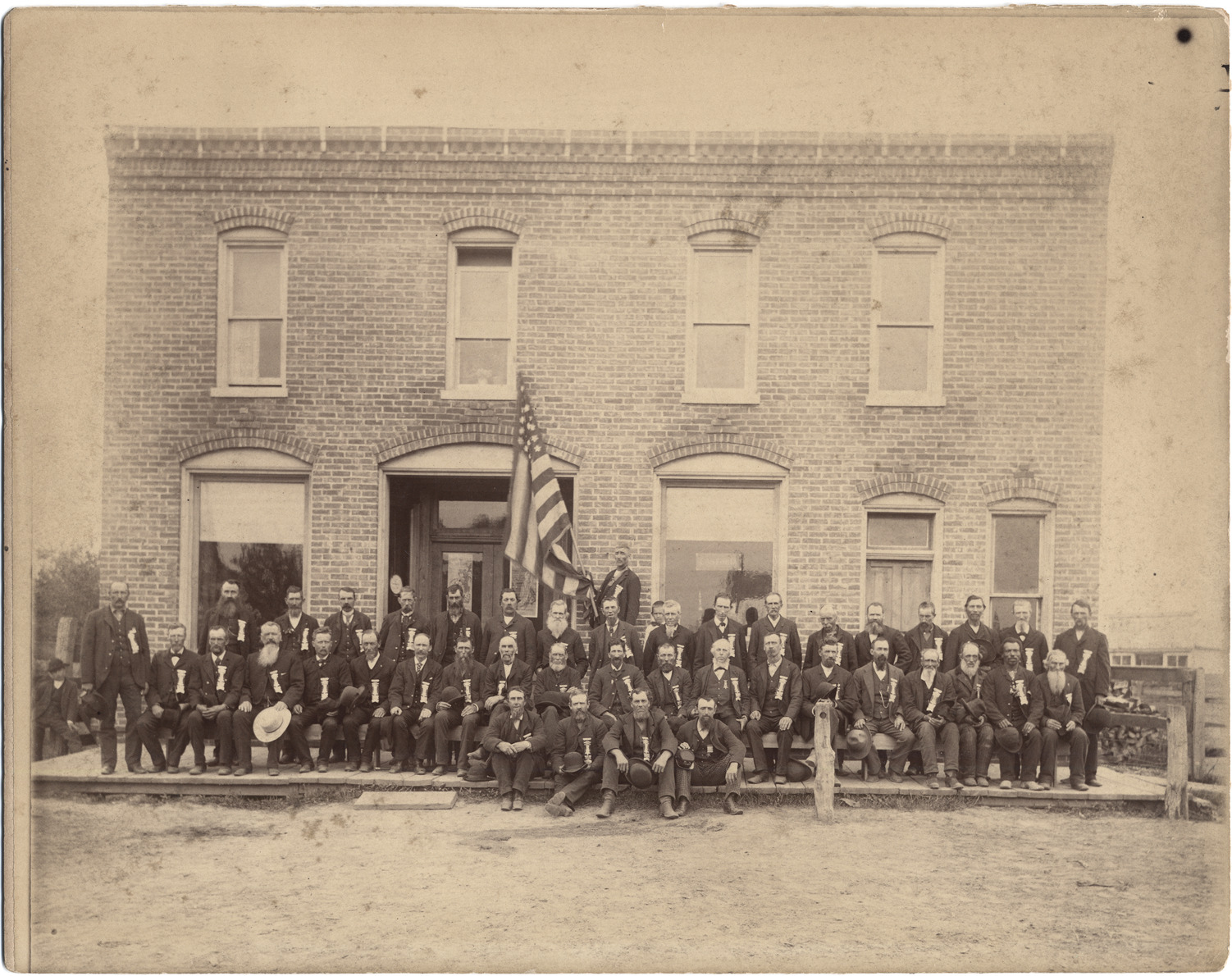 Favorite this☆ Members of Grand Army of the Republic Description: Members of Grand Army of the Republic pose in front of brick building; man in back row holds American flag. Handwritten on back: "About 1879, Civil Veterans, Grand Army of the Republic Post, Bridgeport or Birch Run G.A.R. Post (?)" Details Resource ID: DPA3500 Subject: Grand Army of the Republic--Portraits Portraits, Group Photographic prints Date Issued: 1879 (year approximate) Format: 1 photographic print mounted on mat board ; image 8 x 10 in. Member of: Burton Historical Collection Filing Location: D/Organizations-Grand Army of the Republic Rights: Physical rights are retained by DPL. Copyright is retained in accordance with U.S. copyright laws.