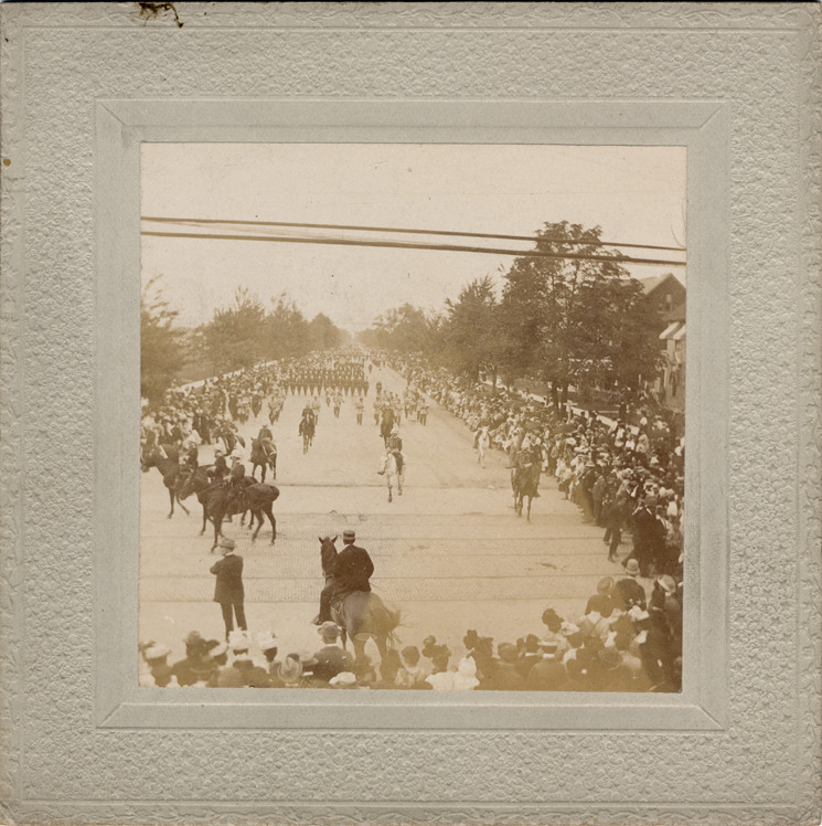 Favorite this☆ Knights of Pythias on parade Description: Uniformed men march in formation down a tree-lined street; uniformed men on horseback; spectators watch from sidelines. Handwritten on back: "K.P. parade, Gd. Blvd. at Jefferson, 1900." Details Resource ID: DPA3512 Subject: Knights of Pythias Parades--Michigan--Detroit Albumen prints Photographic prints Date Issued: 1900 Format: 1 photographic print mounted on mat board ; image 3.25 x 3.25 in. Member of: Burton Historical Collection Filing Location: D/Organizations-Knights of Pythias Rights: Physical rights are retained by DPL. Copyright is retained in accordance with U.S. copyright laws.