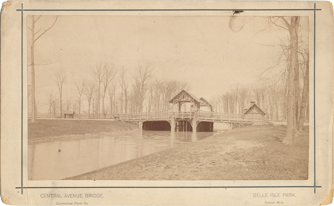 Favorite this☆ Central Avenue Bridge Description: Central Avenue bridge on Belle Isle. Wooden bridge with two enclosed structures on each side of bridge. Printed on front: "Central Avenue Bridge, Commercial Photo Co., Belle Isle Park, Detroit, Mich." Details Resource ID: DPA3637 Creator: Commercial Photo Co. Subject: Belle Isle Park (Detroit, Mich.) Bridges--Michigan--Detroit Photographers--Michigan--Detroit Albumen prints Photographic prints Date Issued: Unknown year Format: 1 photographic print mounted on mat board ; image 4.5 x 7.75 in. Member of: Burton Historical Collection Filing Location: D/Parks-Belle Isle (Rustic bridges) Rights: Physical rights are retained by DPL. Copyright is retained in accordance with U.S. copyright laws.