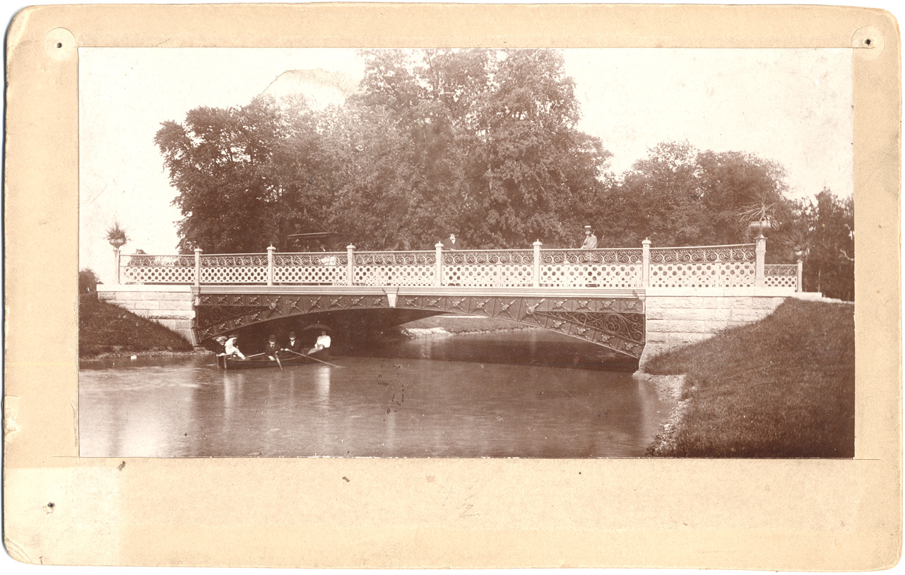 Favorite this☆ Bridge on Belle Isle Description: Wrought iron bridge on Belle Isle. Rowboat passing underneath, pedestrian passing above. Handwritten on back: "Under the iron bridge, Belle Isle Park." Details Resource ID: DPA3638 Subject: Belle Isle Park (Detroit, Mich.) Bridges--Michigan--Detroit Albumen prints Photographic prints Date Issued: Unknown year Format: 1 photographic print mounted on mat board ; image 4 x 7.25 in. Member of: Burton Historical Collection Filing Location: D/Parks-Belle Isle-Bridges Rights: Physical rights are retained by DPL. Copyright is retained in accordance with U.S. copyright laws.