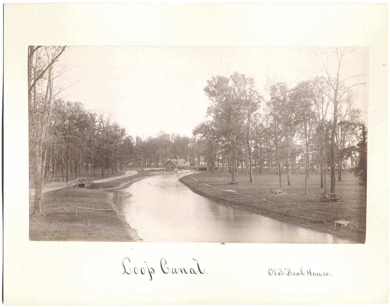 Favorite this☆ Canal on Belle Isle Description: View of canal on Belle Isle with boathouse in distance; rustic bridge and footpath. Handwritten on front: "Loop Canal, old boat house." Handwritten on back: "1888." Details Resource ID: DPA3682 Subject: Belle Isle Park (Detroit, Mich.) Canals--Michigan--Detroit Albumen prints Photographic prints Date Issued: 1888 Format: 1 photographic print mounted on mat board ; image 4.5 x 8 in. Member of: Burton Historical Collection Filing Location: D/Parks-Belle Isle-Canals Rights: Physical rights are retained by DPL. Copyright is retained in accordance with U.S. copyright laws.