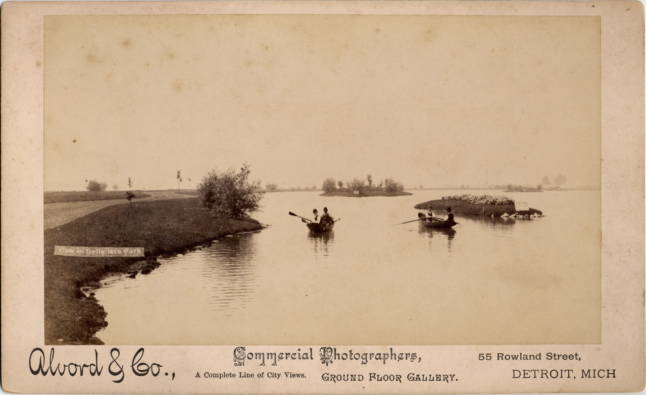 Favorite this☆ Canal on Belle Isle Description: Men rowing boats on canal; small islands on canal. Printed on front: "Alvord & Co., commercial photographers, 55 Rowland Street, Detroit, Mich., a complete line of city views, ground floor gallery." Details Resource ID: DPA3690 Creator: Alvord & Co. Subject: Belle Isle Park (Detroit, Mich.) Canals--Michigan--Detroit Photographers--Michigan--Detroit Albumen prints Photographic prints Date Issued: Unknown year Format: 1 photographic print mounted on mat board ; image 4.25 x 7.25 in. Member of: Burton Historical Collection Filing Location: D/Parks-Belle Isle-Canals Rights: Physical rights are retained by DPL. Copyright is retained in accordance with U.S. copyright laws.
