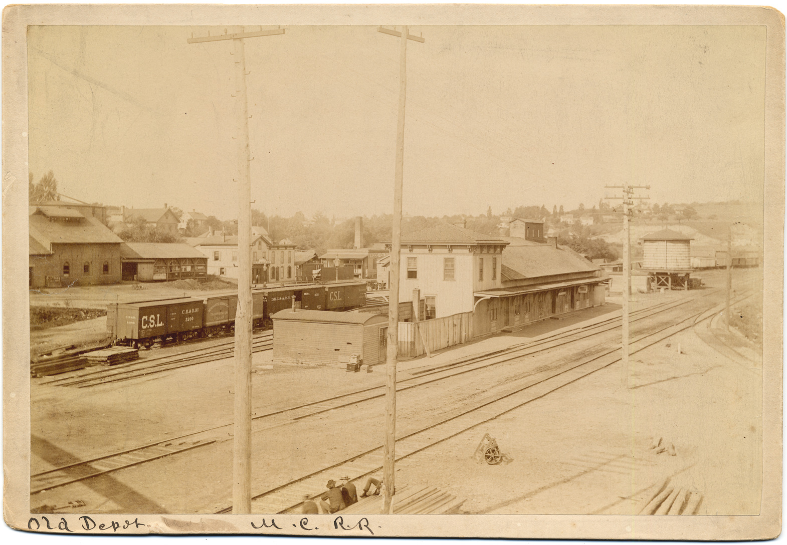 Favorite this☆ Michigan Central Railroad Depot Description: View of railroad station and water tower; railroad cars on tracks behind station; several men sitting on pile of lumber in foreground. Handwritten on front: "Old Depot, M.C.R.R." Handwritten on back: "1848." Details Resource ID: DPA3834 Subject: Railroad stations--Michigan--Detroit Railroad cars--Michigan--Detroit Michigan Central Railroad Company Albumen prints Photographic prints Date Issued: 1848 Format: 1 photographic print mounted on mat board ; image 6.5 x 9.75 in. Member of: Burton Historical Collection Filing Location: D/Railroads-Michigan Central Rights: Physical rights are retained by DPL. Copyright is retained in accordance with U.S. copyright laws.