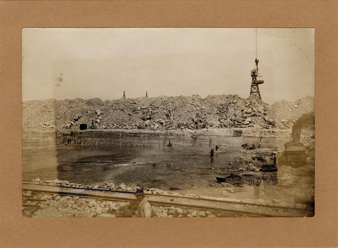 Favorite this☆ Digging the Livingstone Channel Description: Workmen in cut for the Livingstone Channel. Railroad track in foreground; backhoe and crane operating. Handwritten on back: "Livingstone Channel." Details Resource ID: DPA3852 Subject: Channels (Hydraulic engineering)--Michigan Detroit River (Mich. and Ont.)--Channels Construction equipment--Michigan Albumen prints Photographic prints Date Issued: Unknown year Format: 1 photographic print mounted on stock ; image 4.25 x 6.5 in. Member of: Burton Historical Collection Filing Location: D/River-Channels Rights: Physical rights are retained by DPL. Copyright is retained in accordance with U.S. copyright laws.