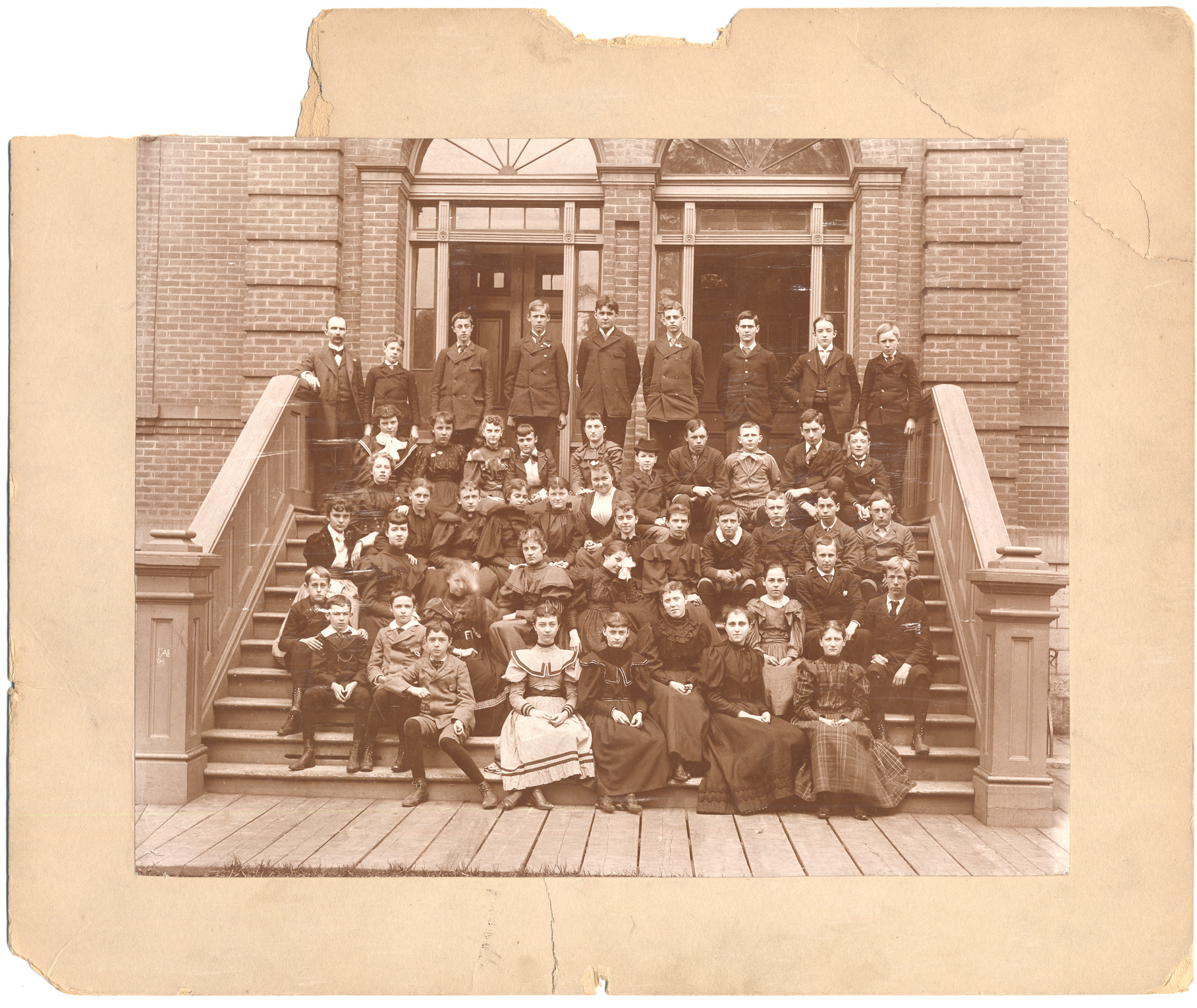 Favorite this☆ Students at Cass School Description: Group portrait of students seated on steps. Handwritten on back: "Class of June '94 of Cass School, an eighth grade graduating class; 1. Mr. Whitney, 2. Lynn Pierce (Jan. '94), 3. Wm. Robinson, 4. Reunsler Scorel, 5. Allie Gaines, 6. Harry Poinier, 7. Cyrus Rice (Jan. '94), 8. Farrand Holmes, 9. Charles Land, 10. Fred Johnson, 11. Charles Grinnell, 12. John Mahony, 13. Charles Gibson, 14. Fred Servis, 15. Maude Strong (Jan. 94), 16. Mable Evans, 17. Blanche Antisdel, 18. May Soose, 29. Maude Maslin, 20. Bertha Blackmir, 21. Maude Myrick, 22. Grace Beattie, 23. Winnie Moore, 24. Louise Guinness, 25. Zelda Palmer, 26. Cora Kelley, 27. Carrie Mills, 28. Joe Warren, 29. Clarence Linsell, 30. Floyd Lee, 31. Charles Ellis, 32. Floyd Douglas, 33. Clarence Wurzburg, 34. Katharine Chapman, 35. Jennie Hislop, 36. Rena Bent, 37. Mattie Barron, 38. Millie Baker, 39. Ethel Churchill, 40. Grace Glidden, 41. Chester Bristan, 42. Albert McDonald, 43. Edward Bloom, 44. Arthur Bowles, 45. Minnie Saxton, 46. Mamie ?, 47. Maude Bowles, 48. Jennie Bachman; Teachers, Miss Brombley, Mr. Whitney." Details Resource ID: DPA3936 Subject: High school students--Michigan--Detroit Portraits, Group--Michigan--Detroit Albumen prints Photographic prints Date Issued: 1894-06 Format: 1 photographic print mounted on mat board ; image 7.5 x 9.5 in. Member of: Burton Historical Collection Filing Location: D/Schools-Cass Rights: Physical rights are retained by DPL. Copyright is retained in accordance with U.S. copyright laws.