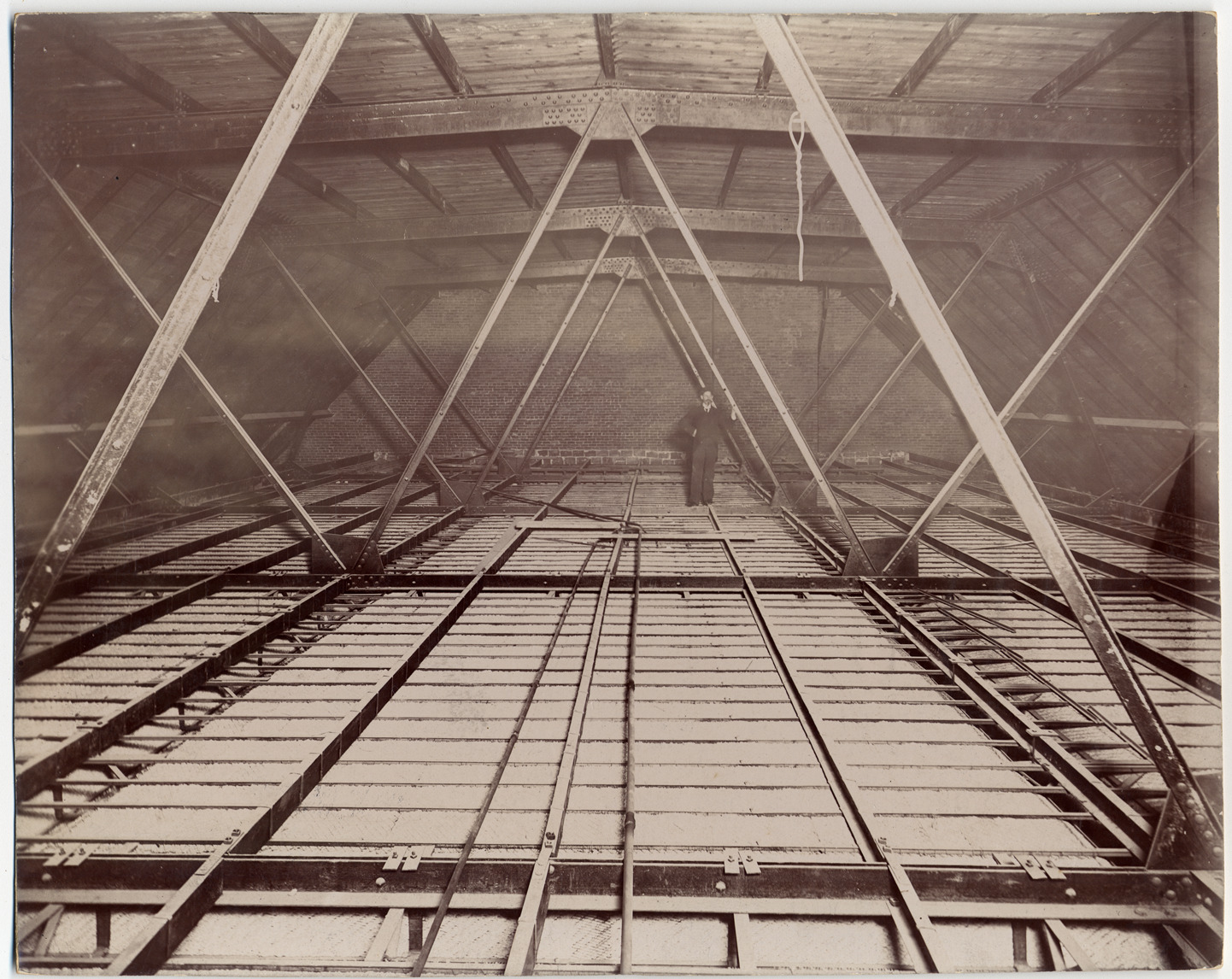Favorite this☆ View of interior of Central High School Description: Man standing in area between ceiling and roof; shows rafters and support beams. Stamped on back: "A. Godfrey & Co., commercial photographers, 41 W. Fort Street, Detroit, Mich." Details Resource ID: DPA3954 Creator: A. Godfrey & Co. Subject: High school buildings--Michigan--Detroit Photographers--Michigan--Detroit Photographic prints Date Issued: 1897 Format: 1 photographic print mounted on mat board ; image 6 x 8.5 in. Member of: Burton Historical Collection Filing Location: D/Schools-Central High, 1897 Rights: Physical rights are retained by DPL. Copyright is retained in accordance with U.S. copyright laws.