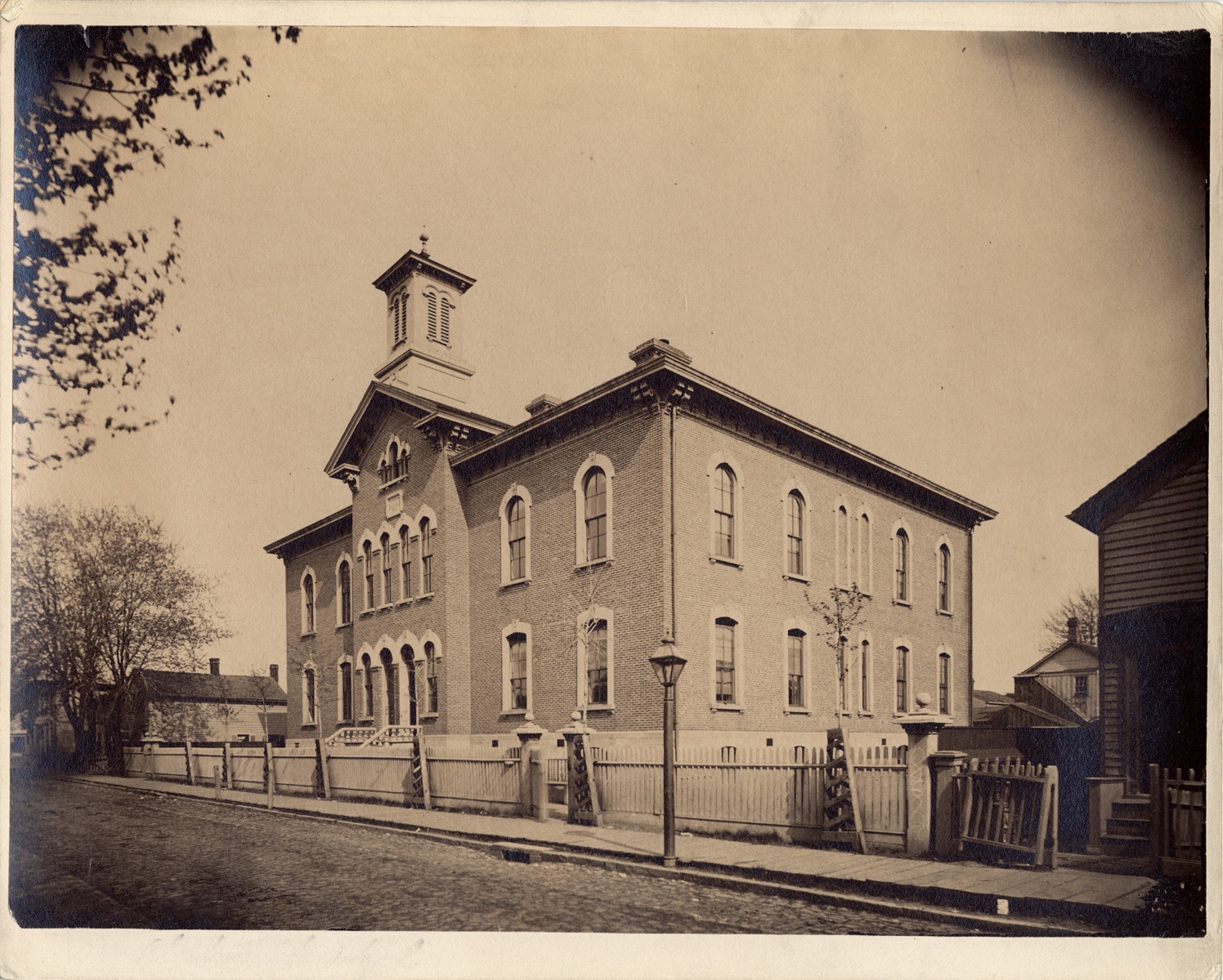 Favorite this☆ Clinton School Description: Two-story brick building with small bell tower in front, surrounded by wooden fence. Handwritten on back: "Clinton School, between Russell and Rivard, s. side of Clinton Street, about 1881." Details Resource ID: DPA3961 Subject: Elementary school buildings--Michigan--Detroit Photographic prints Date Issued: 1881 (year approximate) Format: 1 photographic print mounted on mat board ; image 7.25 x 9.75 in. Member of: Burton Historical Collection Filing Location: D/Schools-Clinton Rights: Physical rights are retained by DPL. Copyright is retained in accordance with U.S. copyright laws.