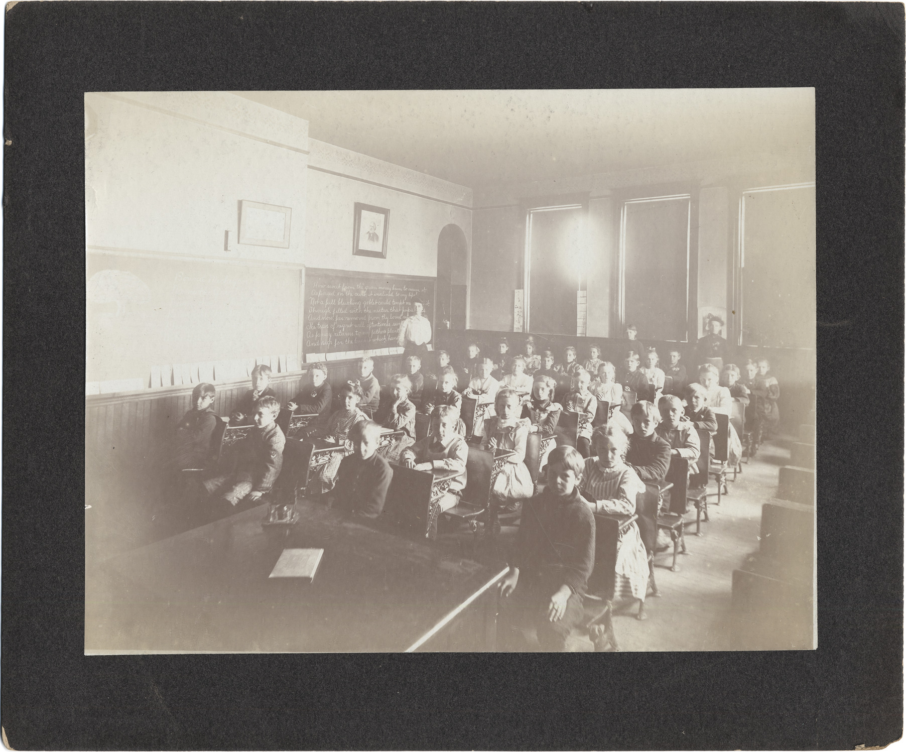 Favorite this☆ Classroom at Higgins School Description: Students seated at desks; teacher stands at blackboard; another teacher stands in back of classroom. Details Resource ID: DPA4008 Subject: Students--Michigan--Detroit Classrooms--Michigan--Detroit Teachers--Michigan--Detroit Albumen prints Photographic prints Date Issued: Unknown year Format: 1 photographic print mounted on mat board ; image 7.5 x 9.5 in. Member of: Burton Historical Collection Filing Location: D/Schools-Higgins Rights: Physical rights are retained by DPL. Copyright is retained in accordance with U.S. copyright laws.