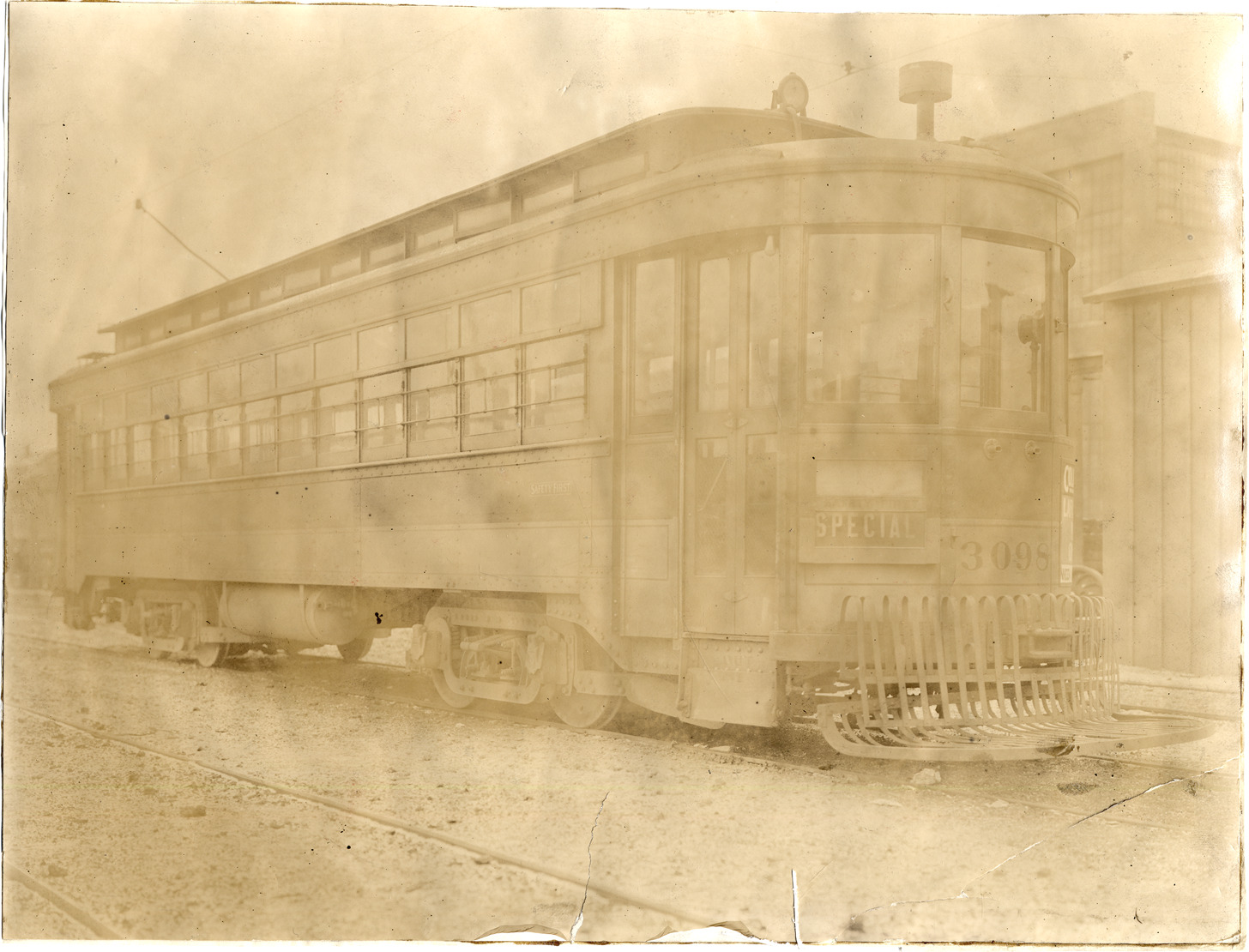 Detroit United Railway streetcar. Displayed in front: "Special, 3098."
