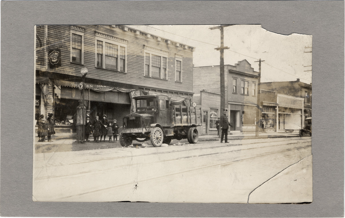 Favorite this☆ Unidentified street Description: Commercial buildings on unidentified street. Large truck parked on street. Group of children gathered on sidewalk, and police officer standing in street. Details Resource ID: DPA4111 Subject: Commercial buildings--Michigan--Detroit Trucks--Michigan--Detroit Photographic prints Date Issued: Unknown year Format: 1 photographic print mounted on stock ; image 4.25 x 6.5 in. Member of: Burton Historical Collection Filing Location: D/Streets Rights: Physical rights are retained by DPL. Copyright is retained in accordance with U.S. copyright laws.