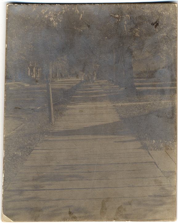 Favorite this☆ Sidewalk on Fort Street Description: View down wooden sidewalk on Fort Street, children seen at far end. Handwritten on back: "Sept. 23rd 1901. Mary Smith, 1172 Fort St. Looking south on 20th St. in front of 197 20th, on the west side of 20th St." Details Resource ID: DPA4221 Subject: Sidewalks--Michigan--Detroit Streets--Michigan--Detroit Photographic prints Date Issued: 1901-09-23 Format: 1 photographic print mounted on mat board ; image 4.75 x 3.75 in. Member of: Burton Historical Collection Filing Location: D/Streets-Fort Rights: Physical rights are retained by DPL. Copyright is retained in accordance with U.S. copyright laws.