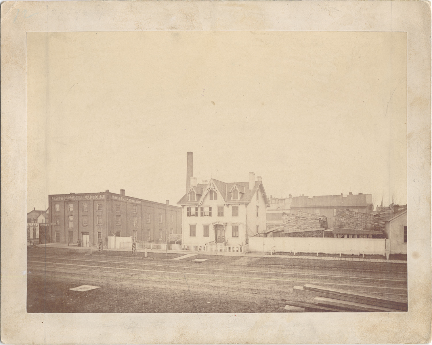 Favorite this☆ Buildings on Fort Street Description: Small two-story house in middle of photo, Sutton Tub & Pail Factory on left side, a demolished building on right side. Handwritten on back: "North side Fort St. near 12th St. about 1881." Stamped on back: "Farmer Bros. photographers, Detroit, Mich." Details Resource ID: DPA4225 Creator: Farmer Brothers Subject: Commercial buildings--Michigan--Detroit Architecture, Victorian--Michigan--Detroit Streets--Michigan--Detroit Photographers--Michigan--Detroit Photographic prints Date Issued: 1881 (year approximate) Format: 1 photographic print mounted on mat board ; image 6.5 x 8.75 in. Member of: Burton Historical Collection Filing Location: D/Streets-Fort Rights: Physical rights are retained by DPL. Copyright is retained in accordance with U.S. copyright laws.