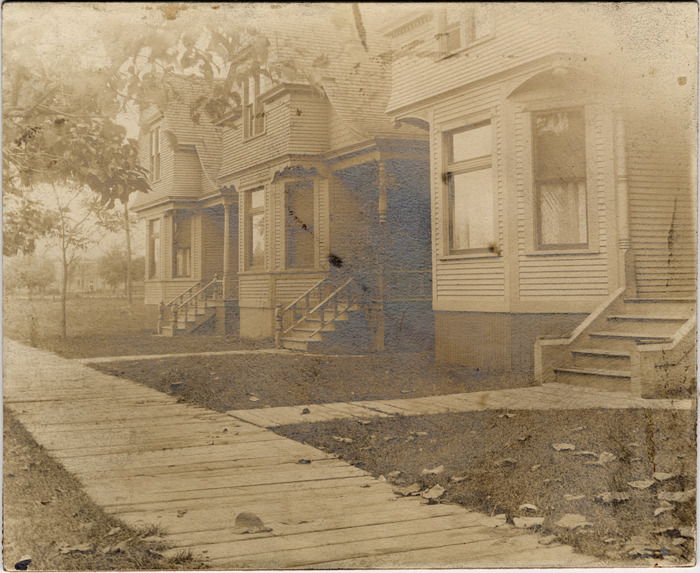 Favorite this☆ Wooden sidewalk on Medbury Avenue Description: Row of small houses lining Medbury Avenue; wooden sidewalk in front. Handwritten on back: "Oct. 11th 1905. R. Perzyk. In front of 895 & 899 Medbury Ave. F.S.Q" Details Resource ID: DPA4355 Subject: Wooden-frame houses--Michigan--Detroit Sidewalks--Michigan--Detroit Streets--Michigan--Detroit Photographic prints Date Issued: 1905-10-11 Format: 1 photographic print mounted on mat board ; image 3.75 x 4.5 in. Member of: Burton Historical Collection Filing Location: D/Streets-Medbury Rights: Physical rights are retained by DPL. Copyright is retained in accordance with U.S. copyright laws.