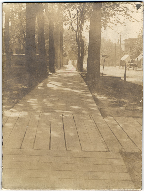 Favorite this☆ Wooden sidewalk at Mullett and St. Aubin Description: Intersection of two wooden sidewalks. Handwritten on back: "May 15th 1902. Adam house. South east cor. of Mullett & St. Aubin, looking south. F.S.Q." Details Resource ID: DPA4374 Subject: Sidewalks--Michigan--Detroit Streets--Michigan--Detroit Photographic prints Date Issued: 1902-05-15 Format: 1 photographic print mounted on mat board ; image 4.75 x 3.75 in. Member of: Burton Historical Collection Filing Location: D/Streets-Mullett & St. Aubin Rights: Physical rights are retained by DPL. Copyright is retained in accordance with U.S. copyright laws.