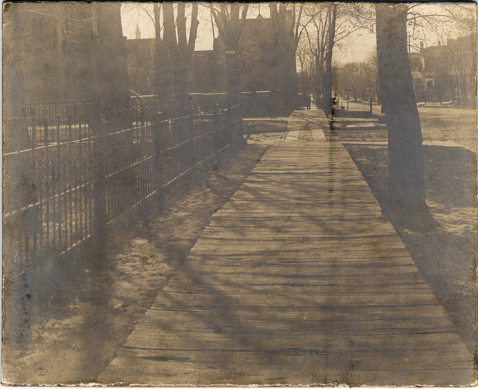 Favorite this☆ Wooden sidewalk at Mullett and St. Aubin Description: Wooden sidewalk on residential street, leading toward intersection of Mullett and St. Aubin. Handwritten on back: "Arp. 26th 1902. Adam house. North east cor. of Mullett & St. Aubin, looking south. F.S.Q." Details Resource ID: DPA4375 Subject: Sidewalks--Michigan--Detroit Streets--Michigan--Detroit Photographic prints Date Issued: 1902-04-26 Format: 1 photographic print mounted on mat board ; image 3.75 x 4.5 in. Member of: Burton Historical Collection Filing Location: D/Streets-Mullett & St. Aubin Rights: Physical rights are retained by DPL. Copyright is retained in accordance with U.S. copyright laws.