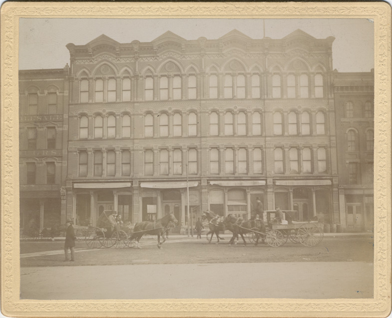 Favorite this☆ P. Henkel & Co. grocers Description: Large brick building, housing P. Henkel & Co. grocers. Horse-drawn carriages in street below. Handwritten on back: "Four story brick building, 122-132 Randolph occupied by P. Henkel & Co. grocers. Site of County Bldg." Details Resource ID: DPA4423 Subject: Grocery trade--Michigan--Detroit Commercial buildings--Michigan--Detroit Albumen prints Photographic prints Date Issued: Unknown year Format: 1 photographic print mounted on mat board ; image 3.75 x 4.75 in. Member of: Burton Historical Collection Filing Location: D/Streets-Randolph Rights: Physical rights are retained by DPL. Copyright is retained in accordance with U.S. copyright laws.