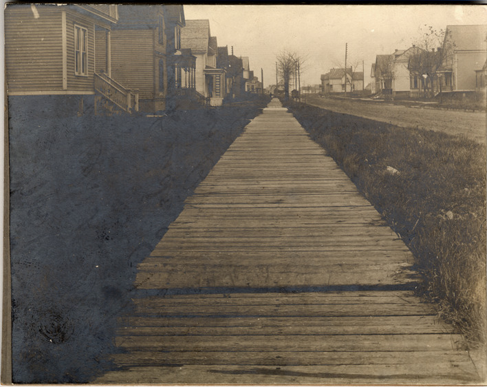 Favorite this☆ Wooden sidewalk on Sidney Description: Wooden sidewalk on Sidney Street. Clapboard houses on either side of street. Handwritten on back: "Nov. 18th 1902. Isabelle Kelley. North side of Sidney between Beaubien & St. Antoine Sts. looking east. F.S.Q." Details Resource ID: DPA4459 Subject: Sidewalks--Michigan--Detroit Streets--Michigan--Detroit Photographic prints Date Issued: 1902-11-18 Format: 1 photographic print mounted on mat board ; image 3.75 x 4.75 in. Member of: Burton Historical Collection Filing Location: D/Streets-Sidney Rights: Physical rights are retained by DPL. Copyright is retained in accordance with U.S. copyright laws.