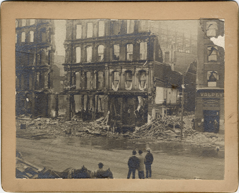 Favorite this☆ Buildings burned with Detroit Opera House Description: Pedestrians looking at buildings burned with Detroit Opera House. Sign visible: Valpey. Handwritten on card back: "Other bldgs. burned with Detroit Opera - it took place in 1890's." Details Resource ID: DPA4623 Subject: Detroit Opera House (1869-1897)--Fire, 1897 Theaters--Fires and fire prevention Commercial buildings--Fires and fire prevention Albumen prints Photographic prints Date Issued: 1897-10 Format: 1cabinet card ; image 4.5 x 3.5 in. Member of: Burton Historical Collection Filing Location: D/Theatres-Detroit Opera House Rights: Physical rights are retained by DPL. Copyright is retained in accordance with U.S. copyright laws.