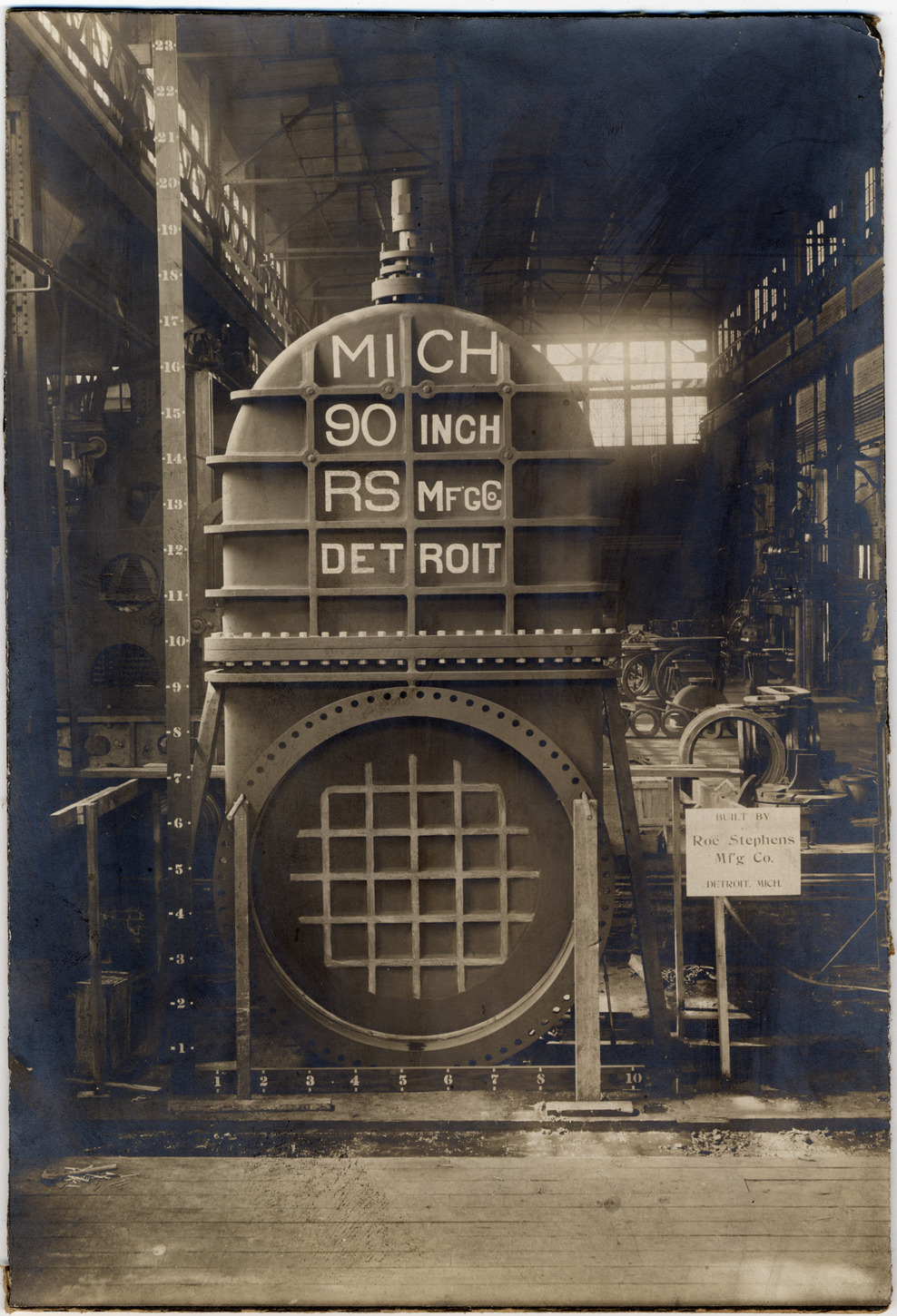 Favorite this☆ Water pumping equipment in pumping station Description: Water pumping equipment. Height and width scales marked. Signs include: Mich. 90-inch, R.S. Mfg Co., Detroit; Built by Roe Stephens Mfg. Co., Detroit, Mich. Stamped on cardboard back: "C.C. [Brewe], com'l. photographer, 205 Griswold St., Detroit, [Mich.] General viewing, copying ... and framing for ... " Details Resource ID: DPA4708 Creator: Brewe, Charles C. Subject: Pumping stations--Michigan--Detroit Photographers--Michigan--Detroit Photographic prints Date Issued: Unknown year Format: 1 photographic print mounted on cardboard ; 9.75 x 6.5 in. Member of: Burton Historical Collection Filing Location: D/Waterworks-pumping station Rights: Physical rights are retained by DPL. Copyright is retained in accordance with U.S. copyright laws.