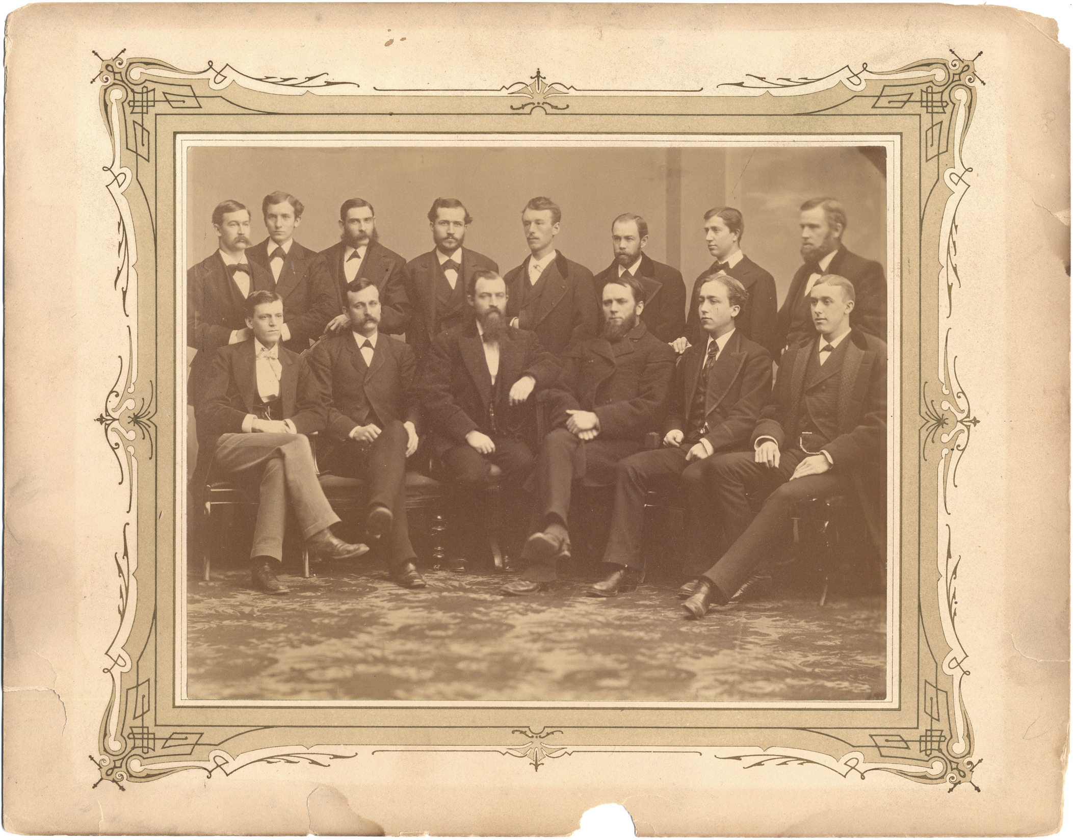 Favorite this☆ Buhl Stamping Co. Board of Directors Description: Group of men, wearing suits, seated and standing in a semicircle. Handwritten on back: "Buhl Stamping Co. Board of Directors, 2nd in front row (from left), Dewitt Clinton Delamater, Jan. 1, 1872." Details Resource ID: DPA4867 Subject: Portraits, Group--Michigan--Detroit Albumen prints Photographic prints Date Issued: 1872-01-01 Format: 1 photographic print mounted on mat board ; image 7.25 x 9.25 in. Member of: Burton Historical Collection Filing Location: LD/Industries & business houses Rights: Physical rights are retained by DPL. Copyright is retained in accordance with U.S. copyright laws.