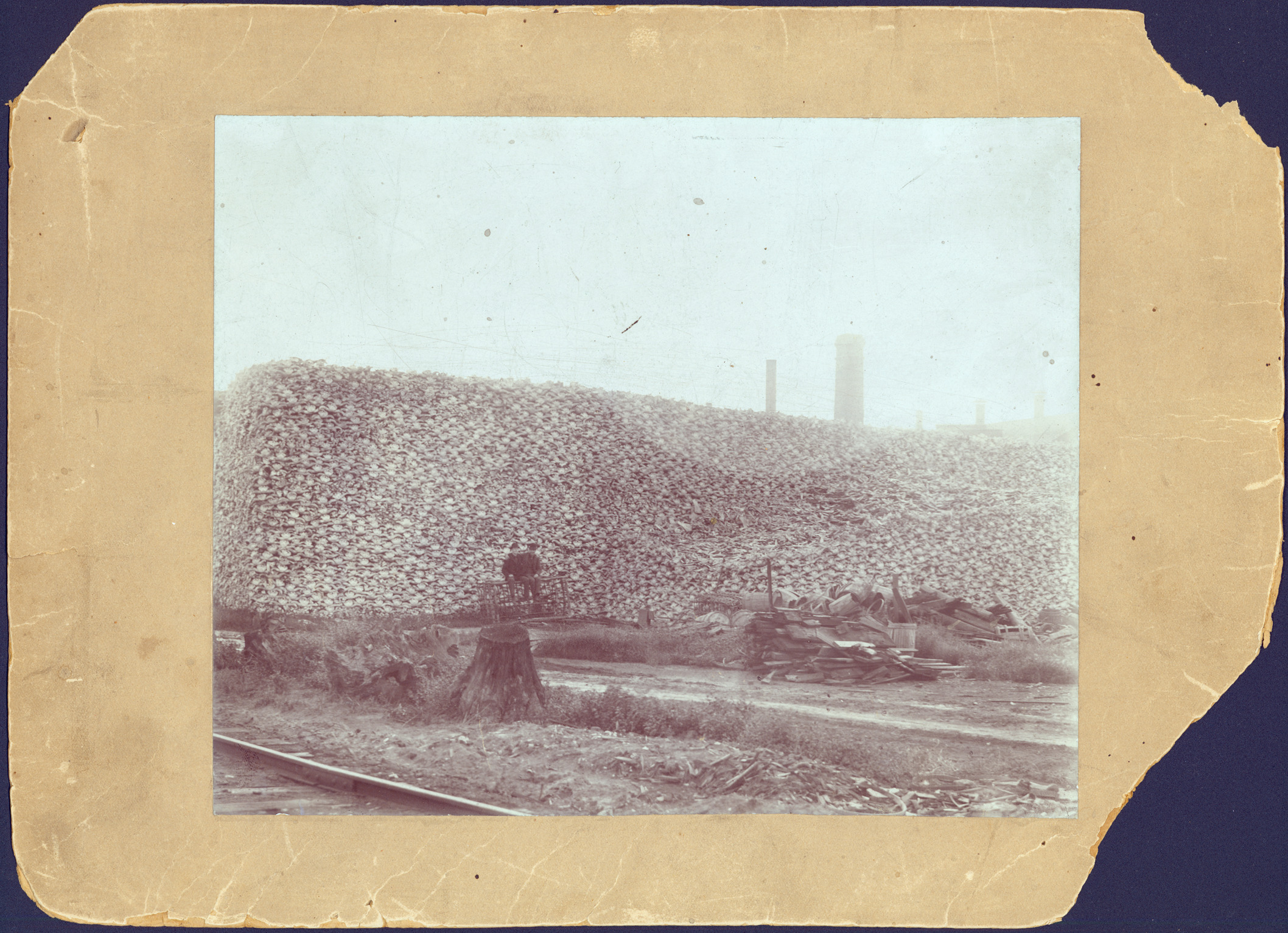 Favorite this☆ Men sitting on pile of buffalo skulls, Michigan Carbon Works Description: Two men sit on top of rustic cage in front of enormous pile of buffalo skulls. Michigan Carbon Works factory buildings in background; debris and tree stump in foreground. Details Resource ID: DPA4900 Subject: Bones--Michigan--Detroit Fertilizer industry--Michigan--Detroit Charcoal industry--Michigan--Detroit Photographic prints Date Issued: Unknown year Format: 1 photographic print mounted on mat board ; image 7.75 x 9.5 in. Member of: Burton Historical Collection Filing Location: LD/Industries & business houses-Michigan Carbon Works Rights: Physical rights are retained by DPL. Copyright is retained in accordance with U.S. copyright laws.