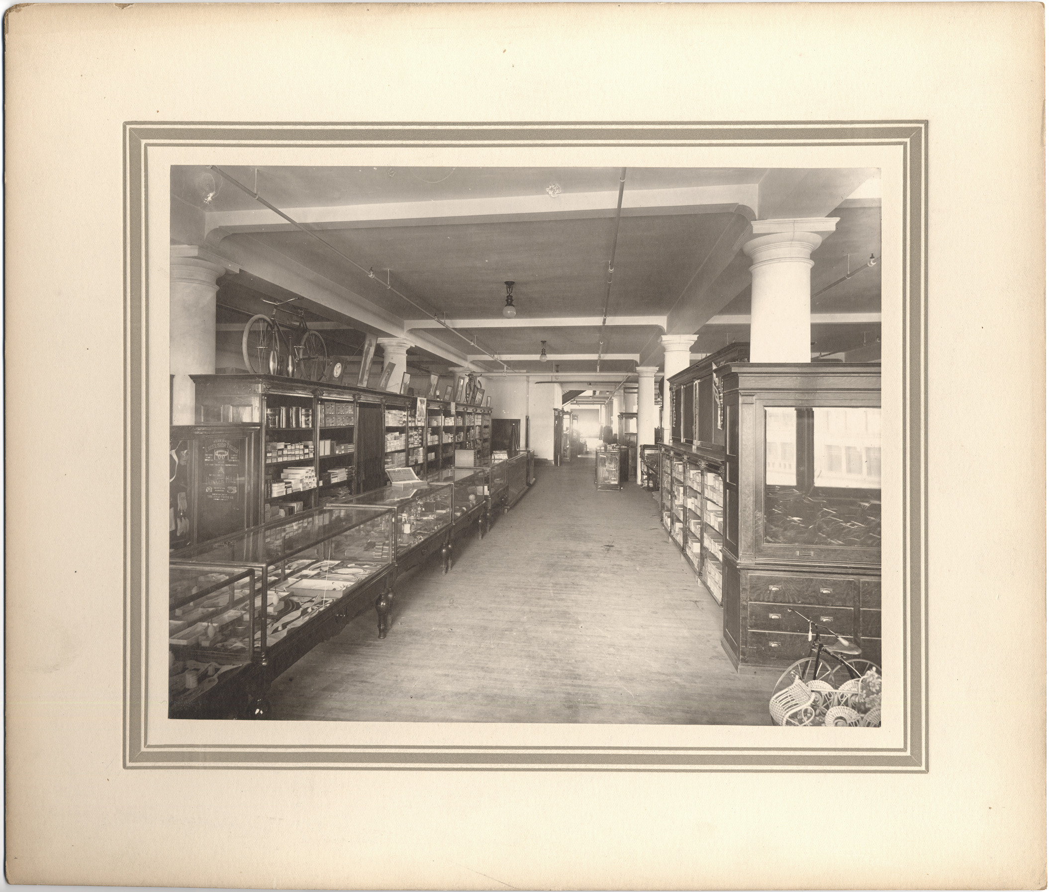 Favorite this☆ Pardridge & Blackwell Description: View of bicycle shop in department store; bicycles displayed on top of cases; bicycle horns and pumps displayed in glass cases; boxes stacked on shelves. Details Resource ID: DPA4930 Subject: Department stores--Michigan--Detroit Bicycle stores--Michigan--Detroit Photographic prints Date Issued: Unknown year Format: 1 photographic print mounted on mat board ; image 7.5 x 9.25 in. Member of: Burton Historical Collection Filing Location: LD/Industries & business houses-Pardridge & Blackwell Rights: Physical rights are retained by DPL. Copyright is retained in accordance with U.S. copyright laws.