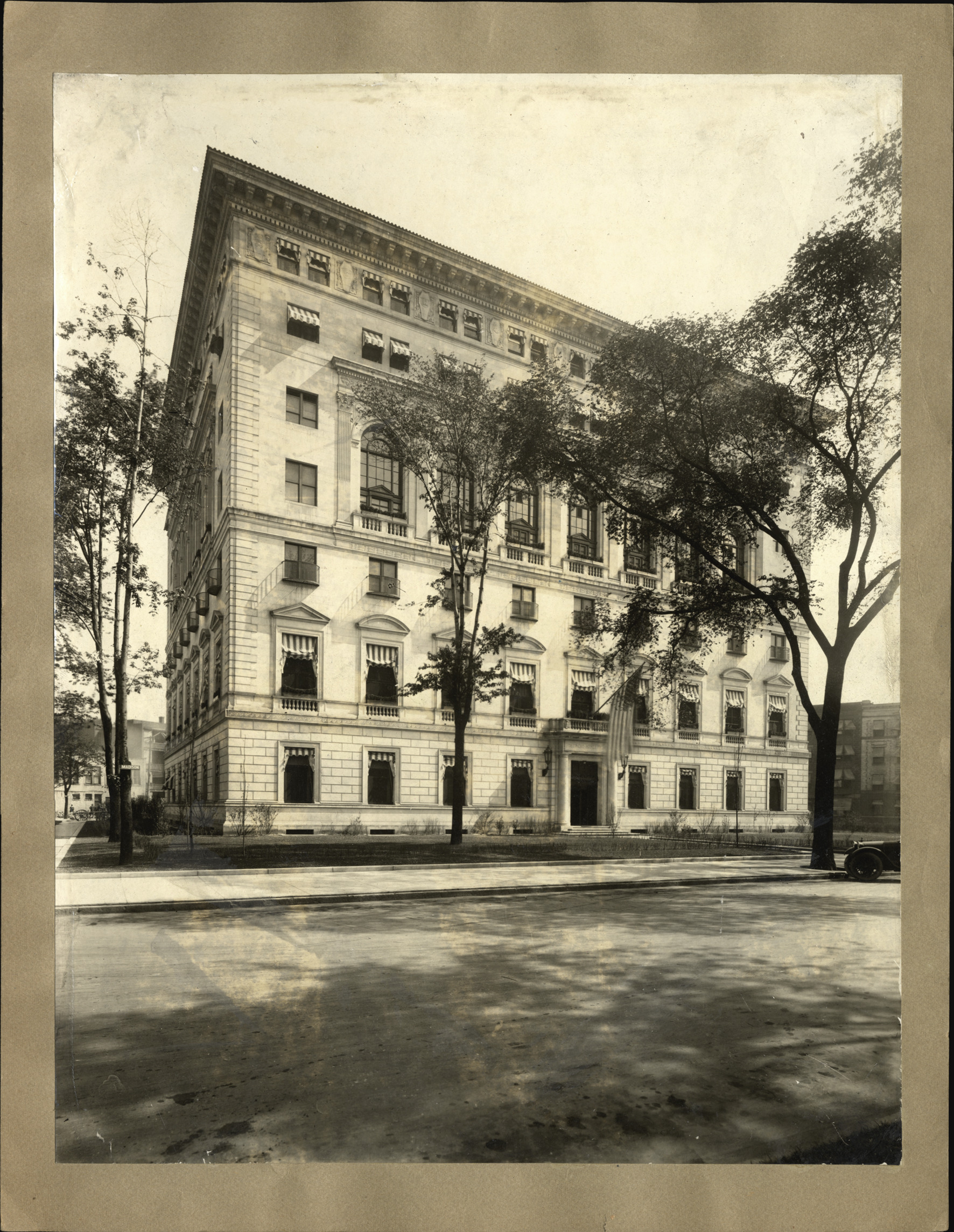 Favorite this☆ Detroit Athletic Club building Description: View of multistory stone building; arched windows on upper story; some windows have balustrades; striped awnings on most windows; American flag hangs over entrance. Details Resource ID: DPA4971 Subject: Detroit Athletic Club Kahn, Albert, 1869-1942 Stone buildings--Michigan--Detroit Photographic prints Date Issued: Unknown year Format: 1 photographic print mounted on stock ; image 13.5 x 10.5 in. Member of: Burton Historical Collection Filing Location: LD/Organizations-Detroit Athletic Club, D.A.C. Rights: Physical rights are retained by DPL. Copyright is retained in accordance with U.S. copyright laws.