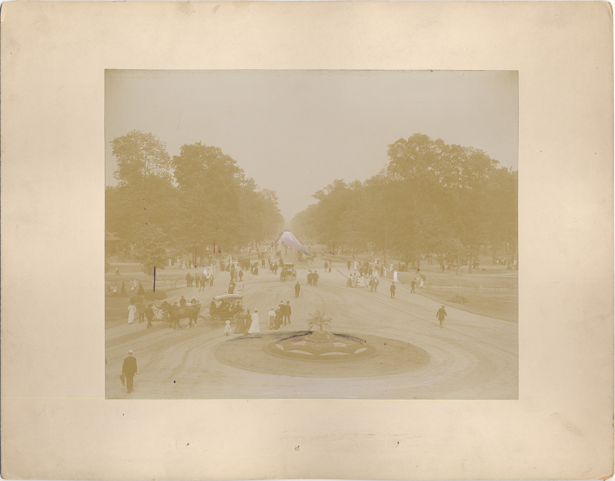 Favorite this☆ Central Avenue on Belle Isle Description: People walking on street; horse-drawn carriages; other people stroll or sit on grassy areas; small garden on circular lawn in foreground. Some details in photograph highlighted with paint. Handwritten on back: "Central Ave. Belle Isle, 1895." Details Resource ID: DPA5046 Subject: Belle Isle Park (Detroit, Mich.) Streets--Michigan--Detroit Albumen prints Photographic prints Date Issued: 1895 Format: 1 photographic print mounted on mat board ; image 7.5 x 9.5 in. Member of: Burton Historical Collection Filing Location: LD/Parks-Belle Isle Rights: Physical rights are retained by DPL. Copyright is retained in accordance with U.S. copyright laws.