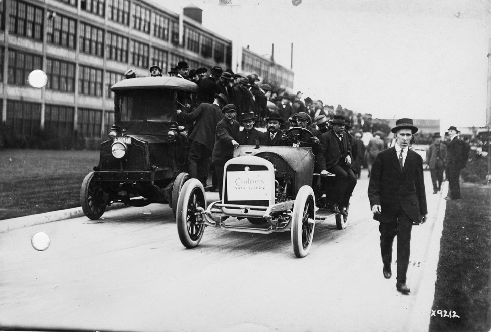 Favorite this☆ Chalmers Motor Company workers at factory during 1915 streetcar strike Description: View of workers at Chalmers Motor Company factory taken during 1915 streetcar strike showing trucks. Details Resource ID: EB01a055 Subject: Automobile factories--Michigan--Detroit Chalmers Motor Company Automobile industry workers--Michigan--Detroit Photographic prints Date Issued: 1915 Format: 1 photographic print ; 4.5 x 6.5 in. Member of: National Automotive History Collection Rights: Physical rights are retained by DPL. Copyright is retained in accordance with U.S. copyright laws.